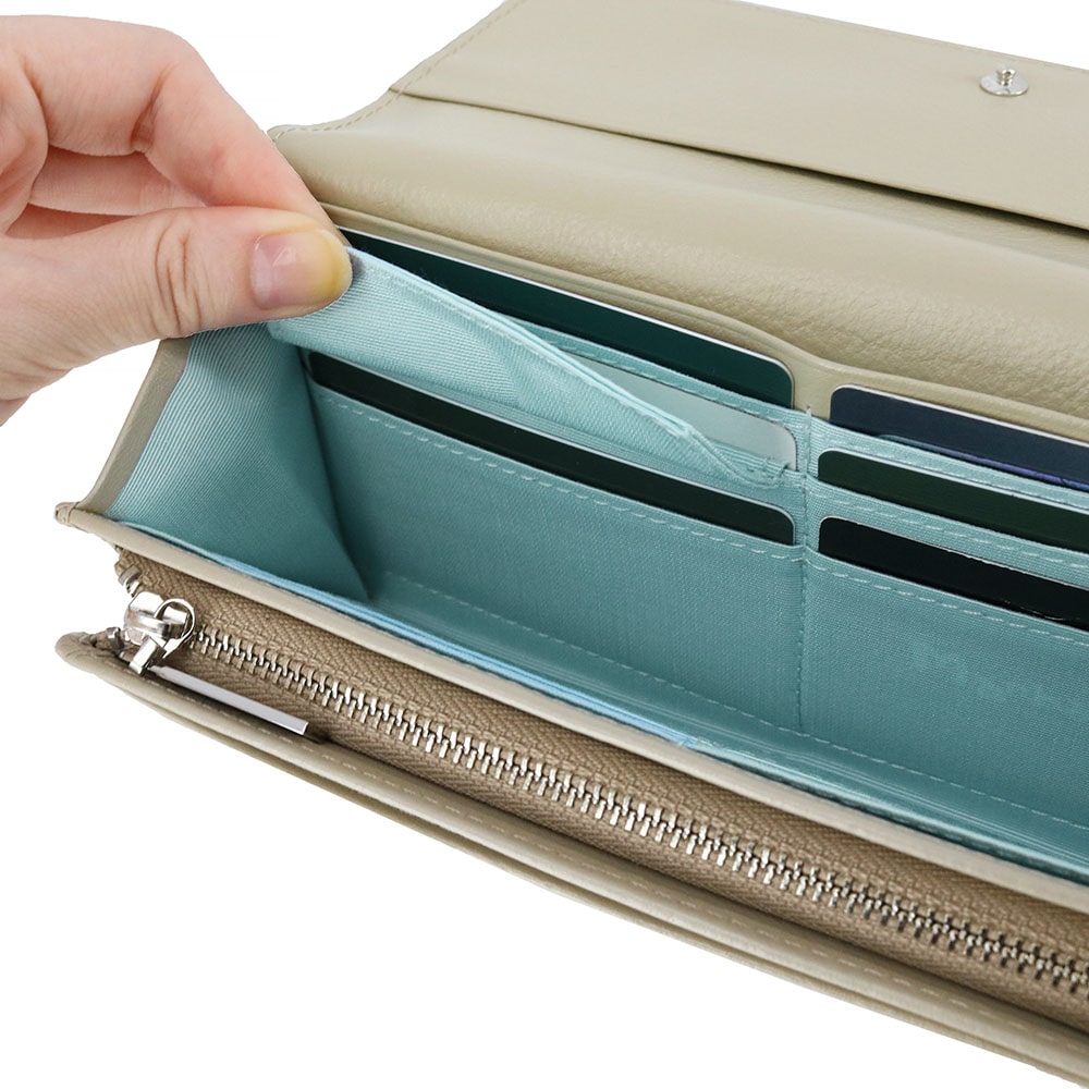 ・札入れ内はもちろん、かぶせ裏のフリーポケット内や小銭入れ手前のフリーポケット内にもカードポケットを搭載。