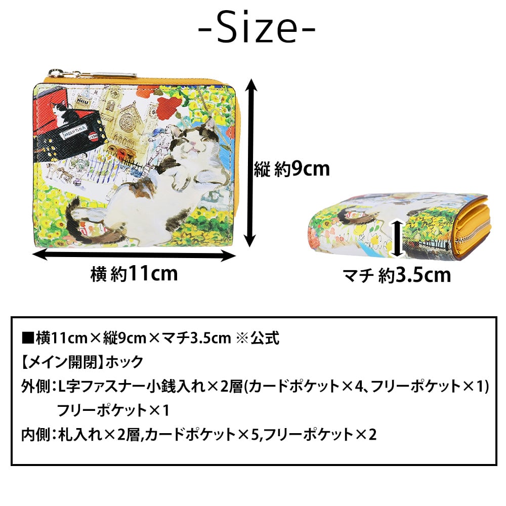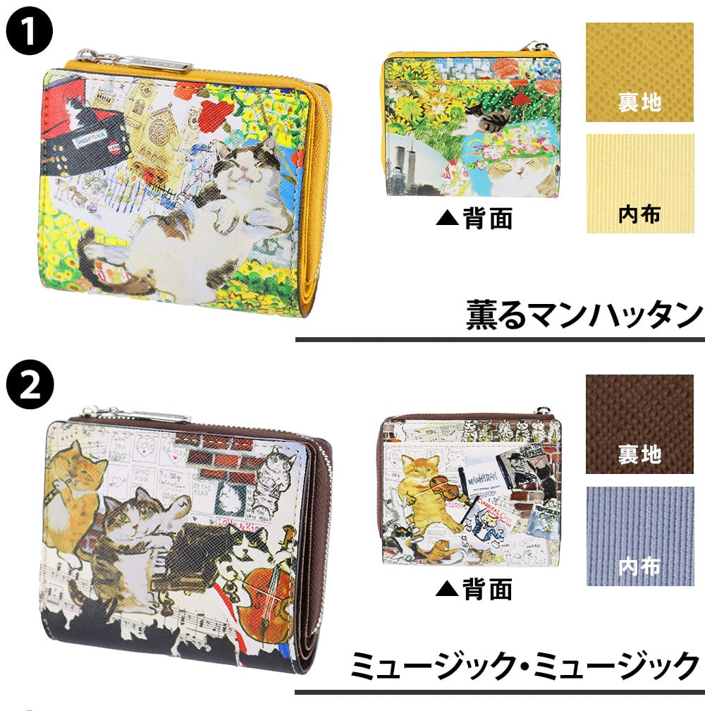 マンハッタナーズ manhattaner's 二つ折り財布 ミニ財布 サブ財布 小さめ 通勤 通学 旅行 小銭入れあり ネコ ねこ キャット アニマル 動物 猫 かわいい アート 久下貴史 Lively Purse