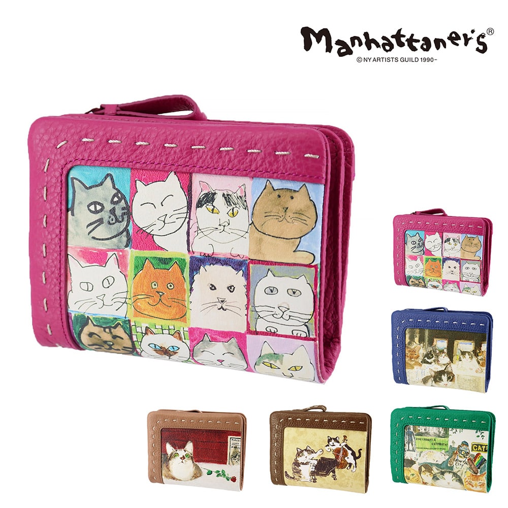 マンハッタナーズ manhattaner's 2つ折り 二つ折り コンパクト 人気 女性 通勤 通学 旅行 小さめ 薄マチ ネコ ねこ キャット アニマル 動物 猫 かわいい アート 久下貴史 Craft Perth