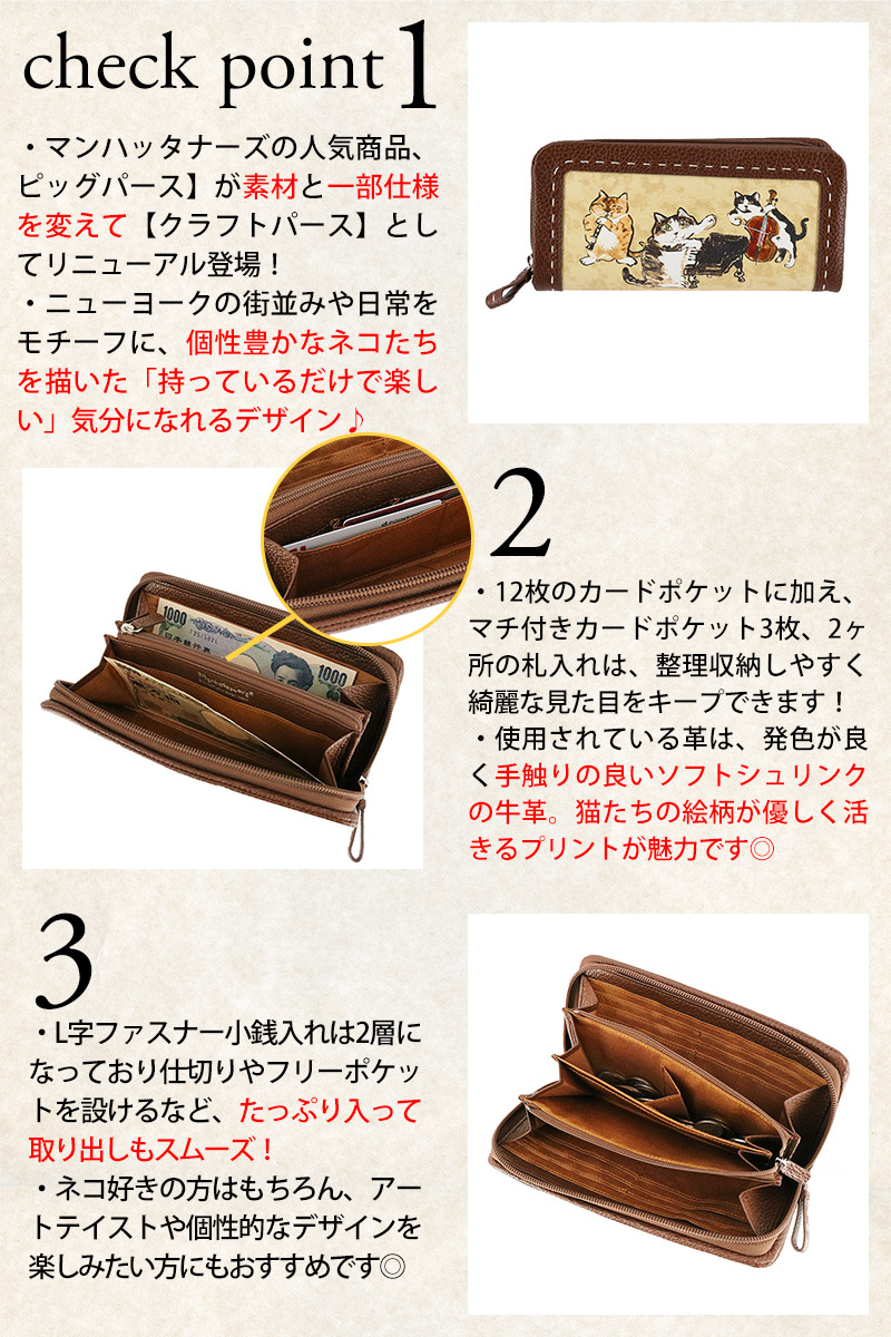 マンハッタナーズ 財布 長財布 ラウンドファスナー長財布 本革 manhattaner's クラフトパース 0751694 レディース 送料無料 誕生日プレゼント ギフト ラッピング無料 【正規代理店】 3.NY猫絵暦・六月 -0751694-1070