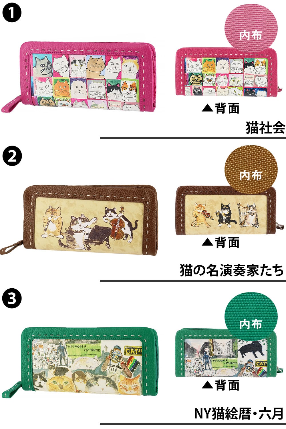 マンハッタナーズ manhattaner's ラウンドファスナー長財布 サブ財布 人気 女性 通勤 通学 旅行 薄マチ ネコ ねこ キャット アニマル 動物 猫 かわいい アート 久下貴史 Craft Perth