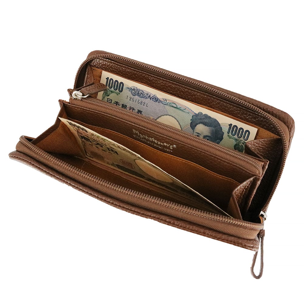 L字ファスナー小銭入れ×2層(片方は仕切りあり、フリーポケット×1)