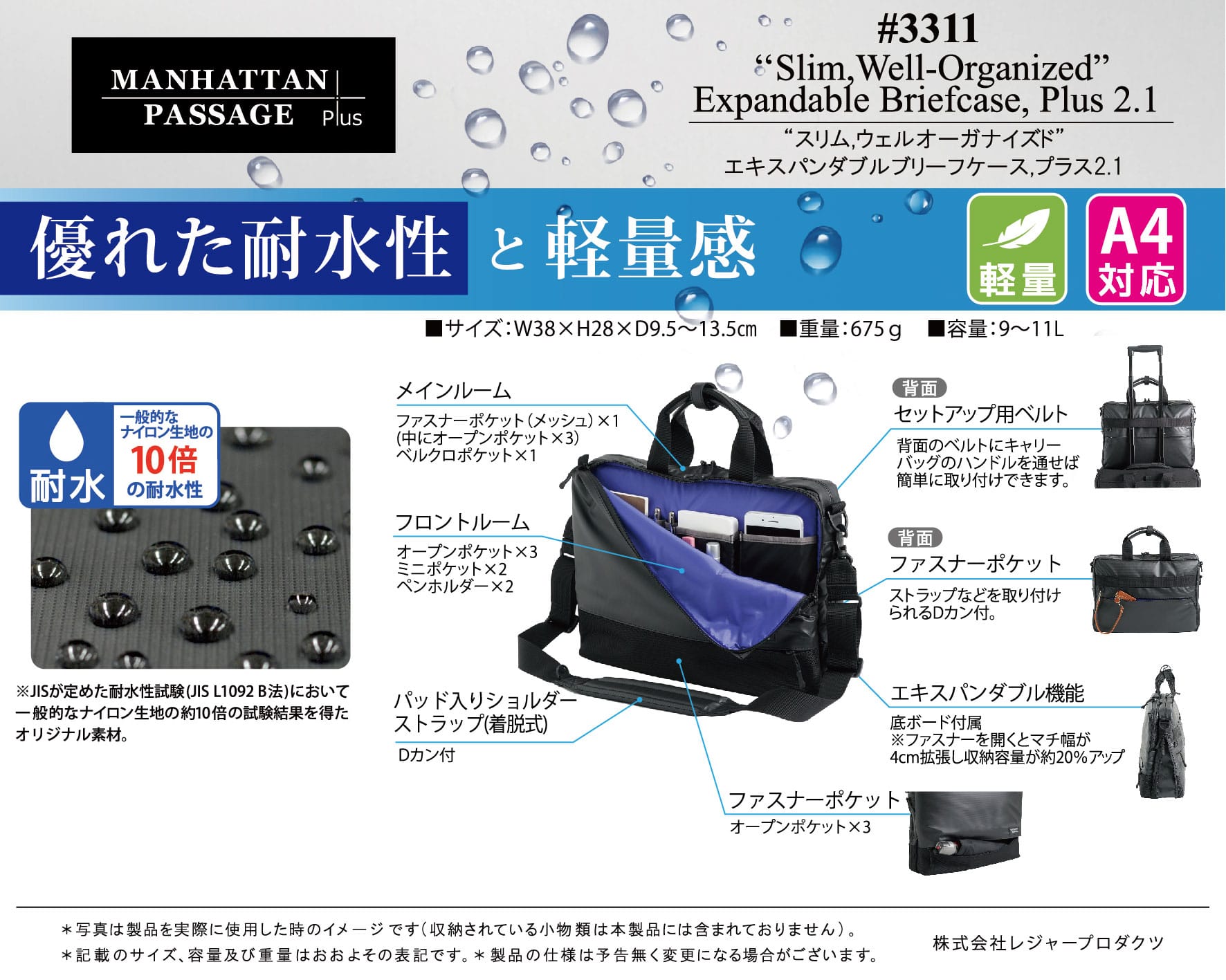 スリムでスタイリッシュ。シーンや用途に合わせてマチ幅を調整できるエキスパンダブル機能。書類など荷物の量が急に増えたときでも対応します。セットアップできるので出張にも◎