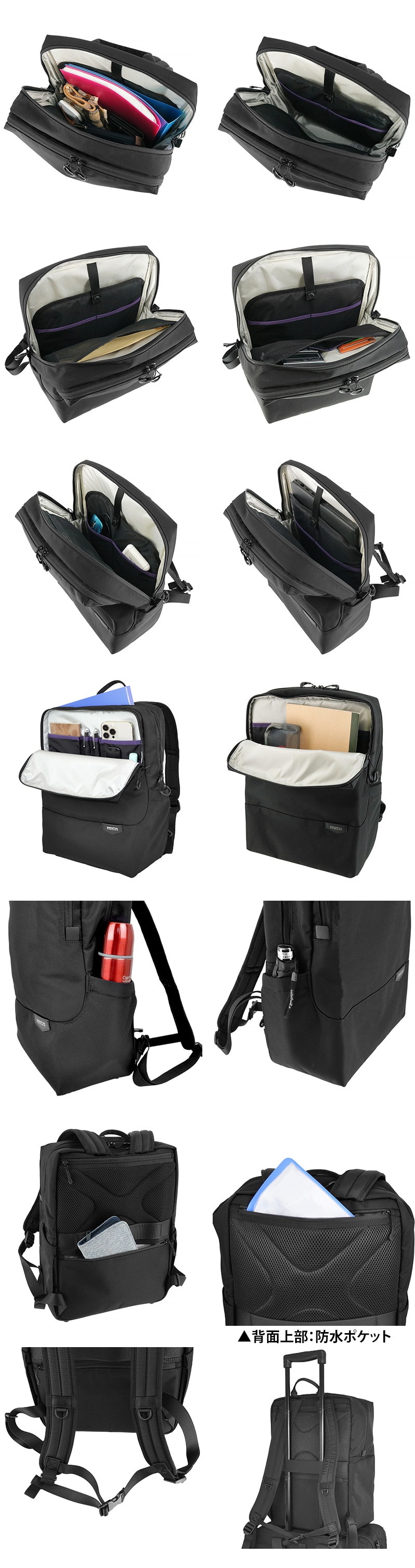 背面ファスナーポケット×2(上段内部は耐水加工)