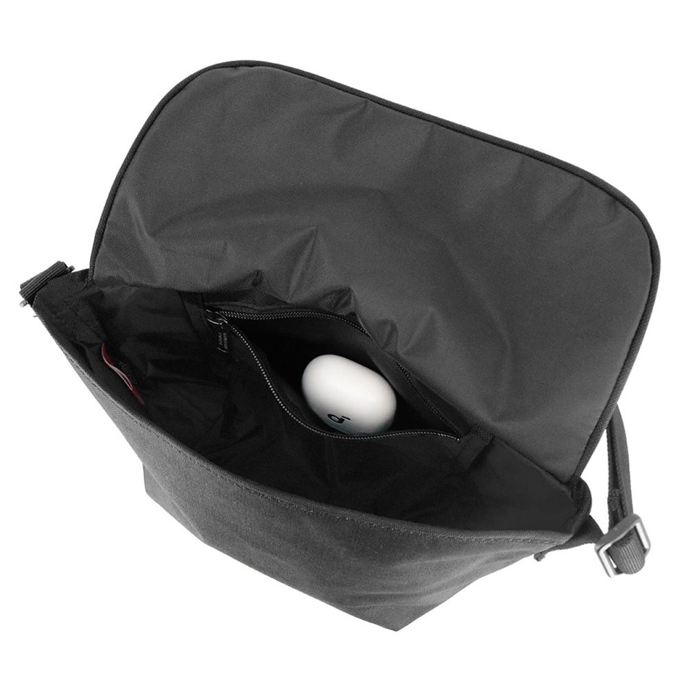 立体的なフラップデザインと都会的なモノトーン配色で、街のスタイルに自然に馴染みます。