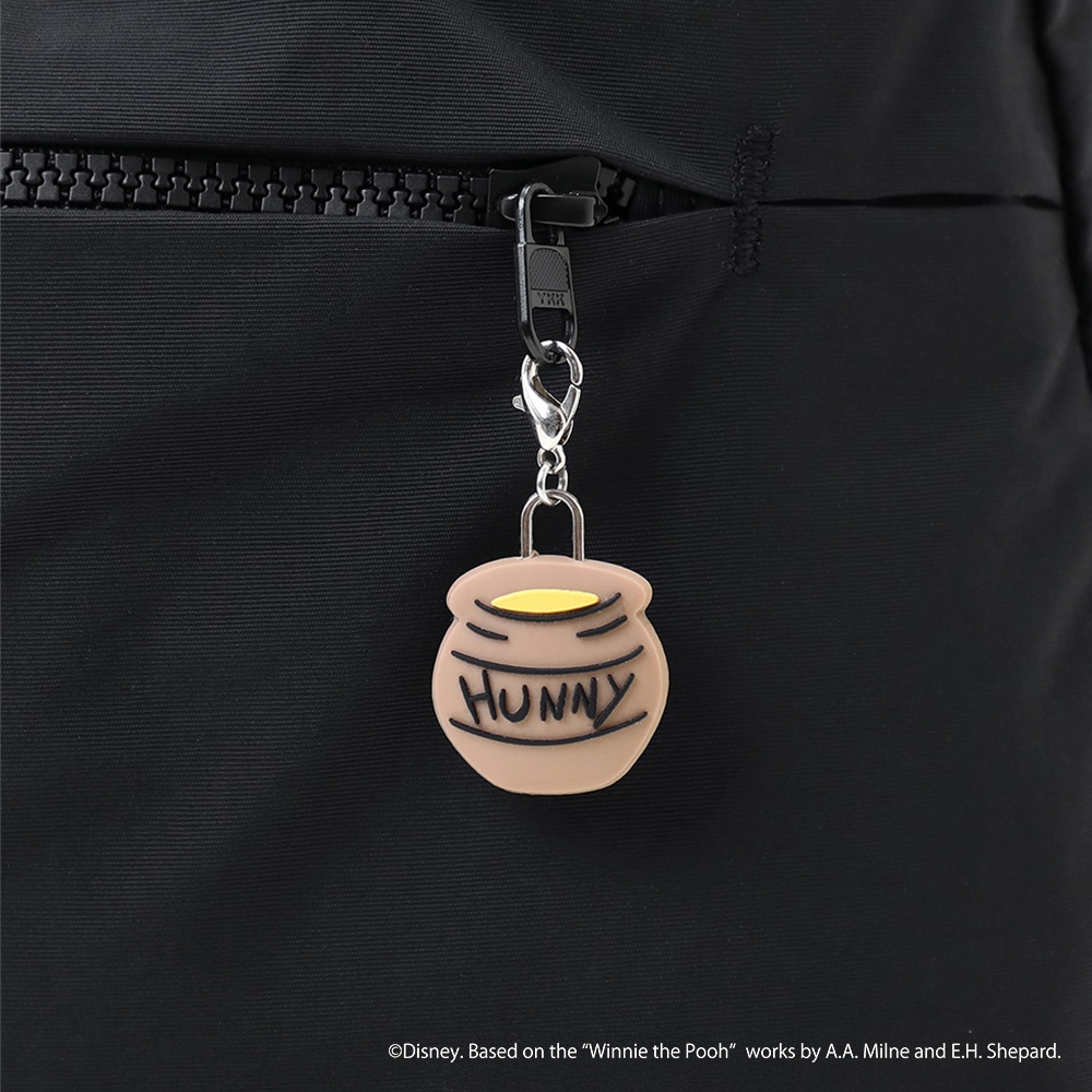 さらに、ファスナーには「プーさん」の象徴とも言える、コロンと丸いシルエットが可愛いハニーポットのシリコンチャームが付いています。