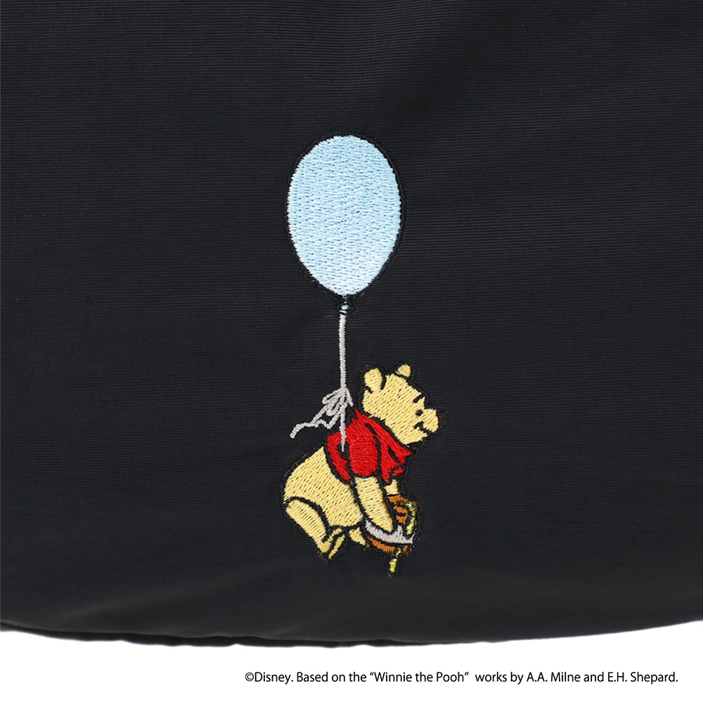 風船につかまれて空を飛ぶほのぼのとした「プーさん」のワンポイントアートワークを採用。