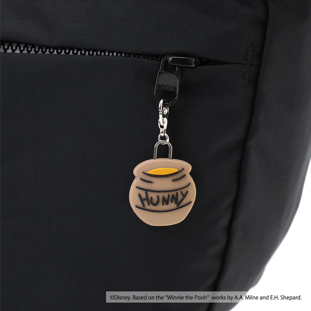 さらに、ファスナーには「プーさん」の象徴とも言える、コロンと丸いシルエットが可愛いハニーポットのシリコンチャームが付いています。
