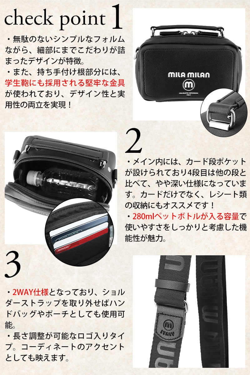 ミラ・ミラン mila milan 2WAY ハンドバッグ ショルダー 斜めがけ 手提げ 大人 小さめ コンパクト ミニバッグ 普段使い 合皮 上品 シンプル おしゃれ かっこいい 旅行 男女兼用 OTTO
