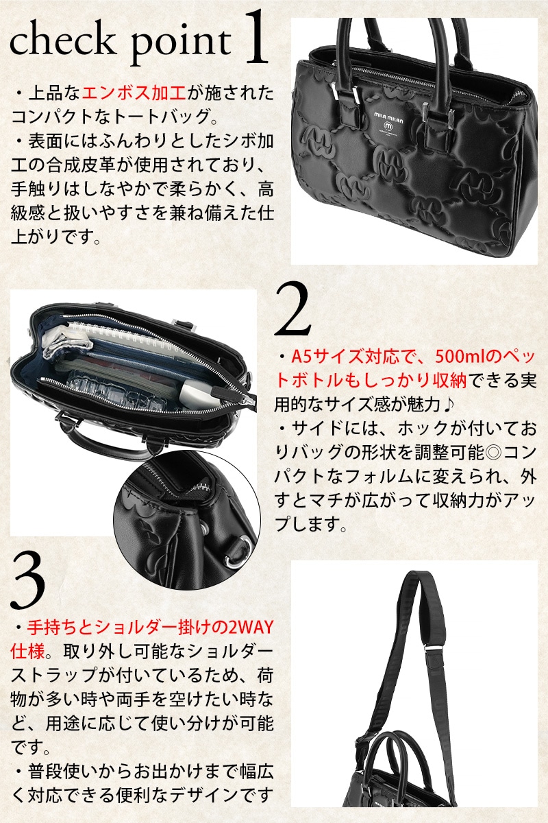 ブランドモチーフである“mmモノグラム”を高圧型押しした、大人可愛い2WAYバッグです。