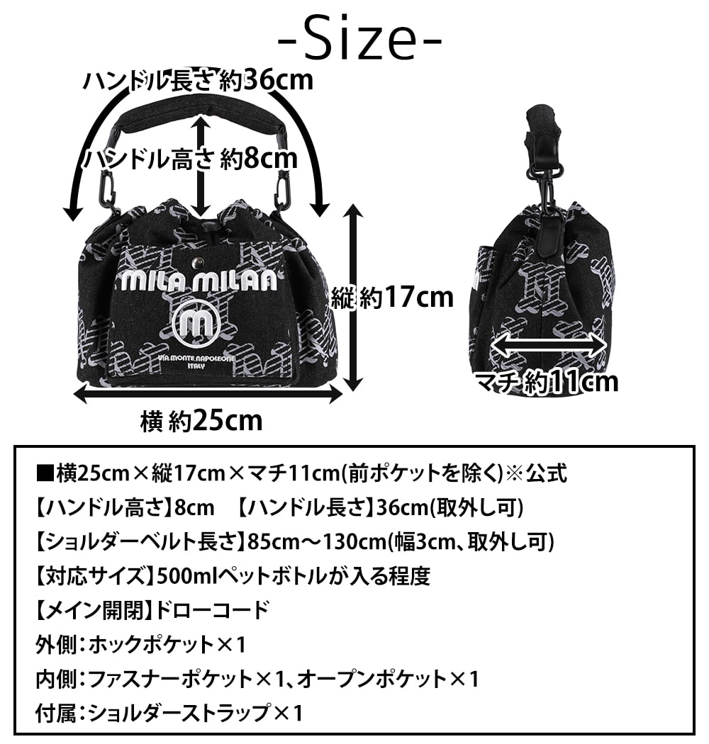 デザイン性と使いやすさを両立した、【mila milan / ミラ・ミラン】らしい存在感のある巾着ショルダー。