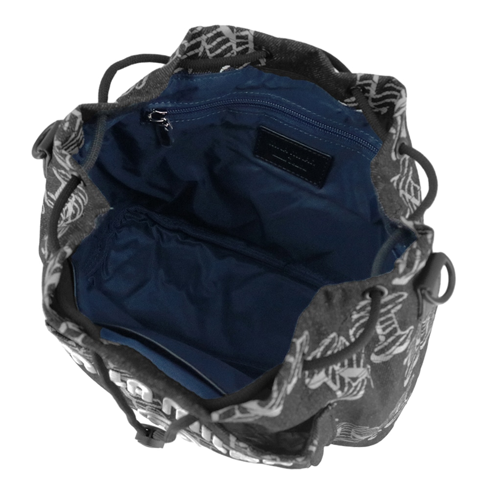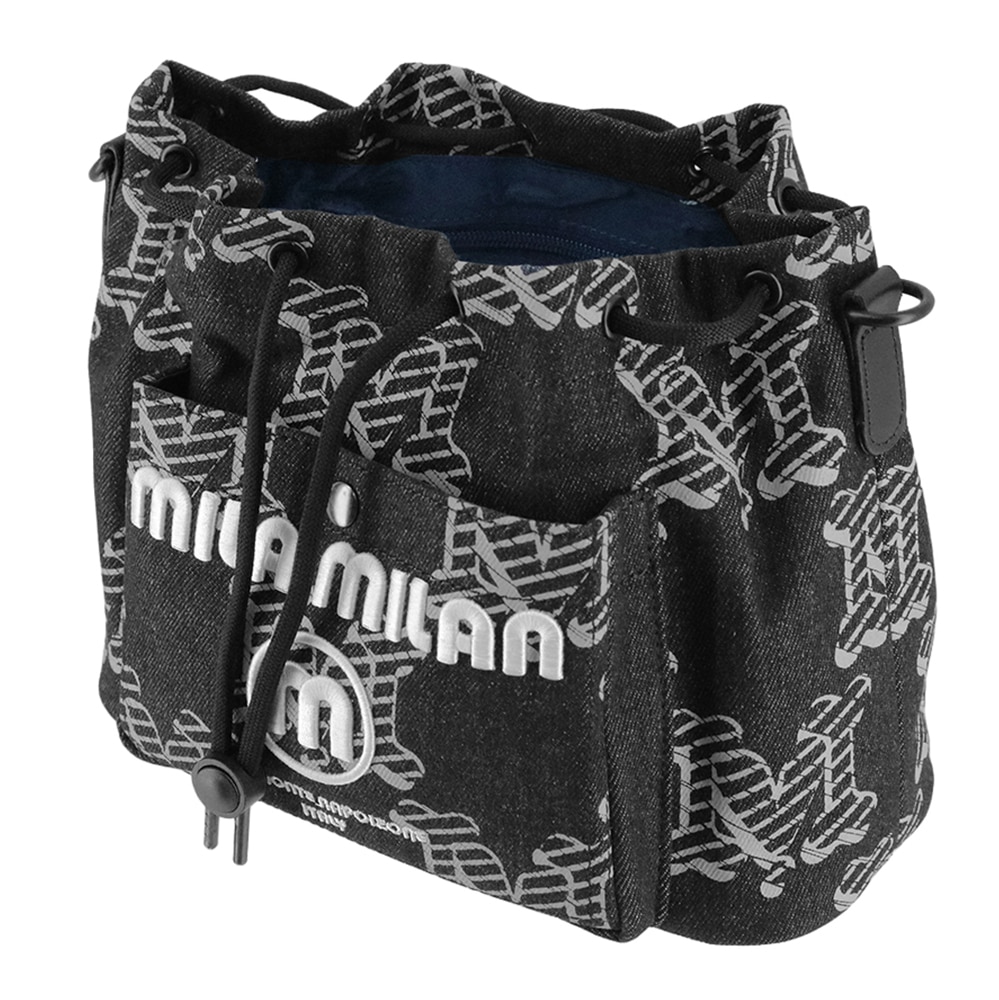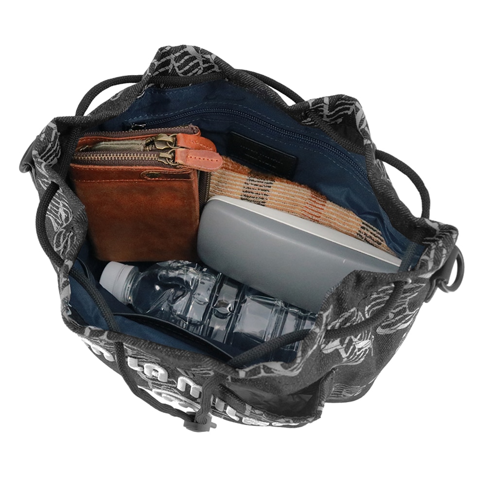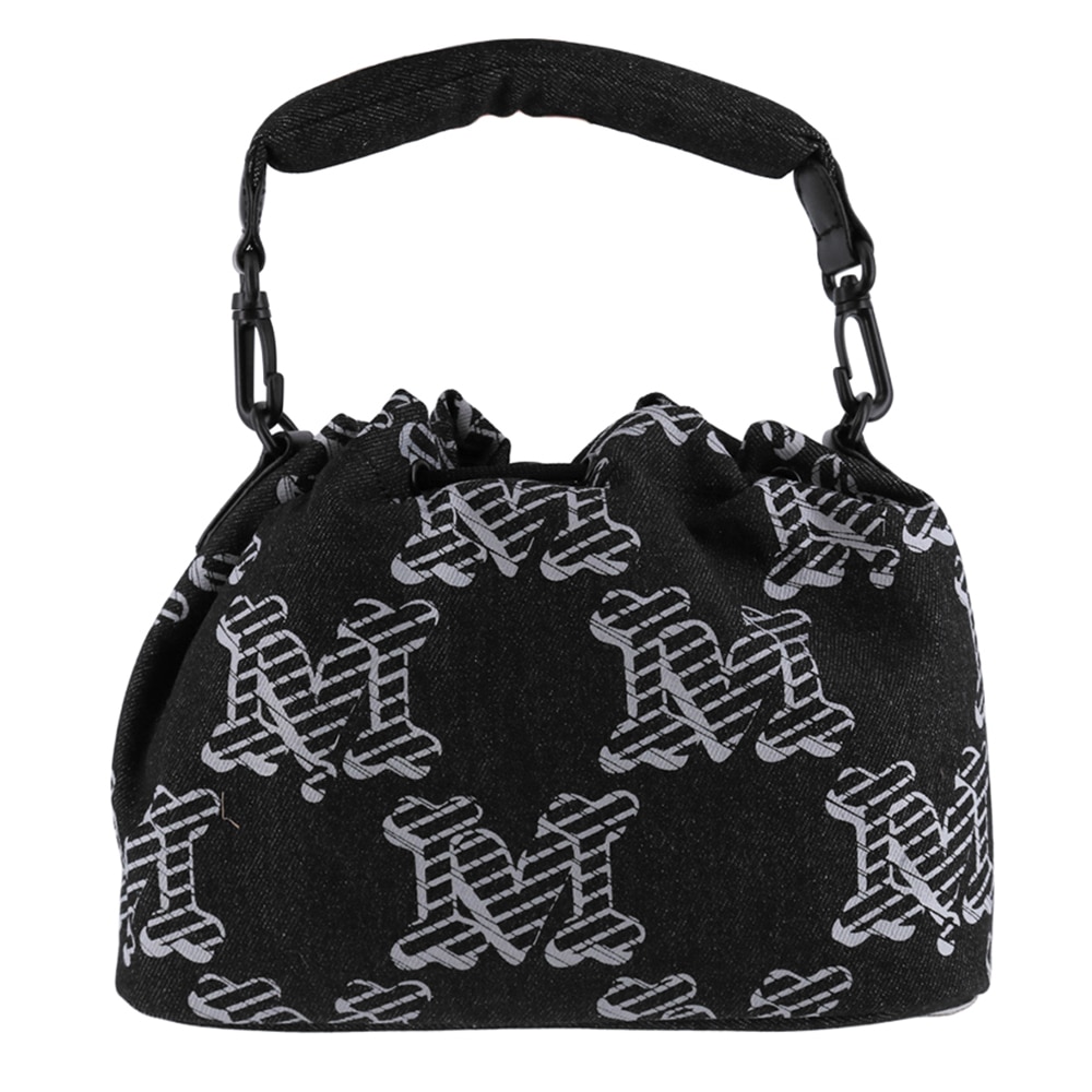 デニムライクな表情とモノグラムデザインを、巾着フォルムで楽しめるショルダーバッグ。