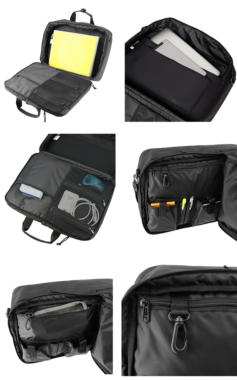 ブリーフバッグ、バックパック、ショルダーバッグの3パターンで使用可能!