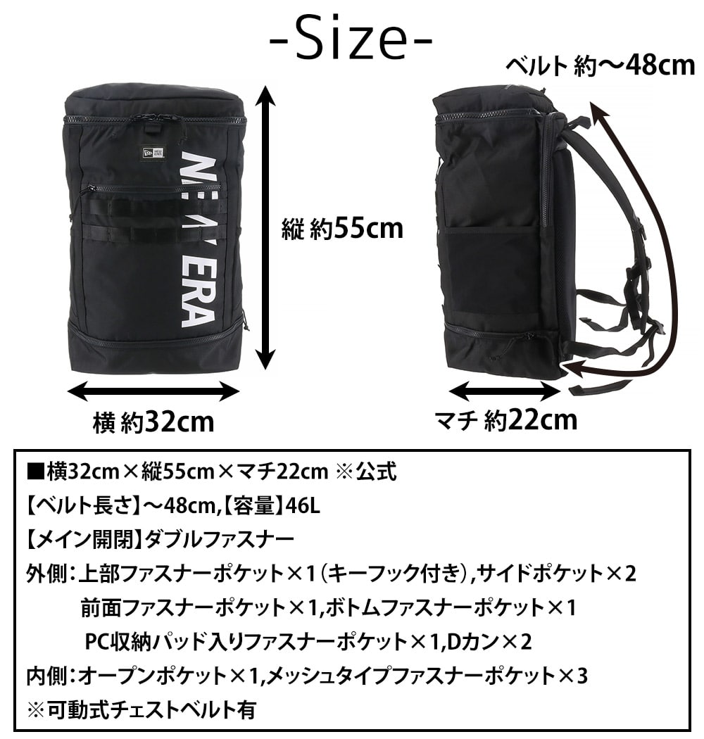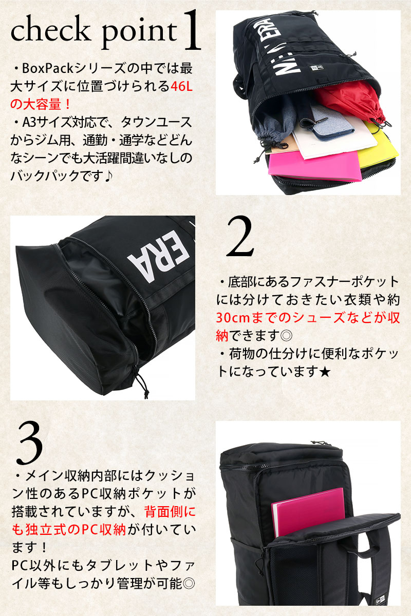 ボックス型のシルエットが特徴的なボックスパックを最大サイズ(46L)のラージサイズにアレンジしました。