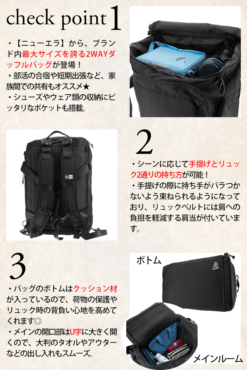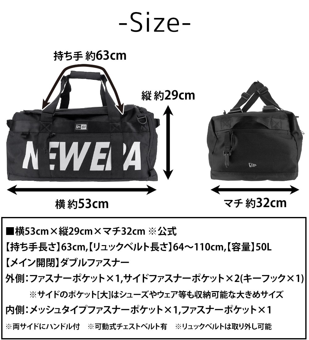 50Lの大容量で「ニューエラ」のバッグコレクションでは最大サイズとなるクラブダッフルバッグ。