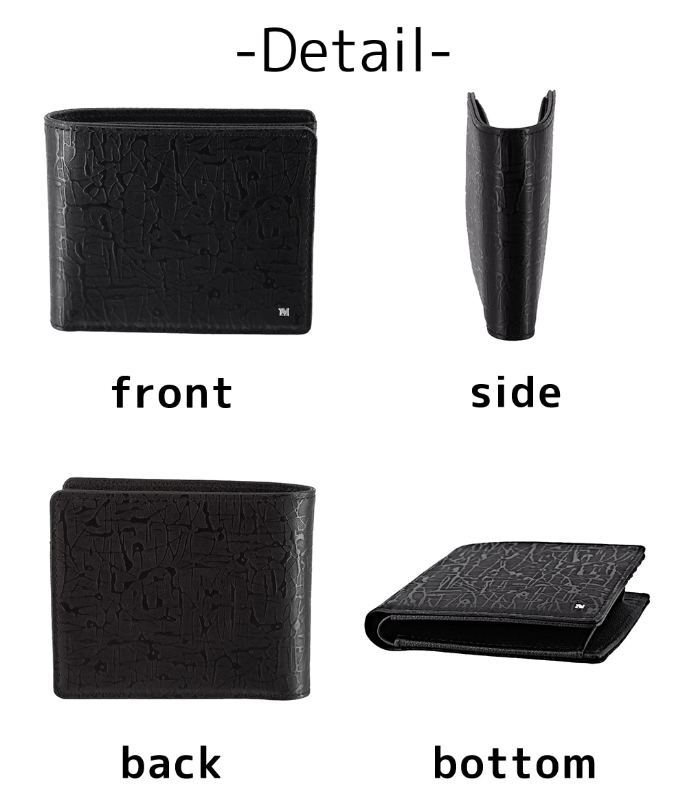 牛革にゴート風型押しを施したうえで、表面全体に有機的なランダムラインを重ねた独自のレザーを使用。
