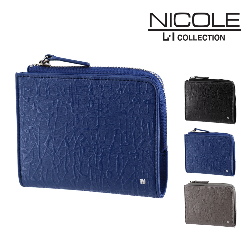 ニコル NICOLE 折り財布 L字ファスナー 薄い 小さい ウォレット レザー ビジネス フォーマル 無地 シンプル ギフト プレゼント ご褒美 通勤 通学 旅行 人気 カッコいい 大人 黒 青 Harley
