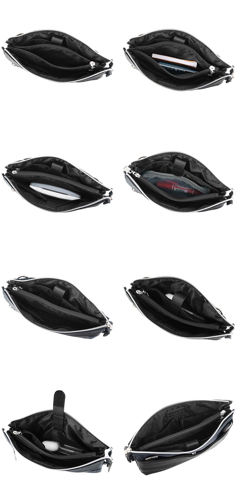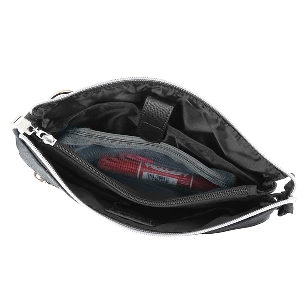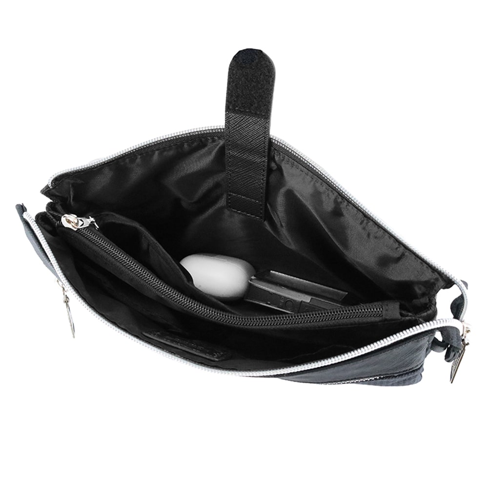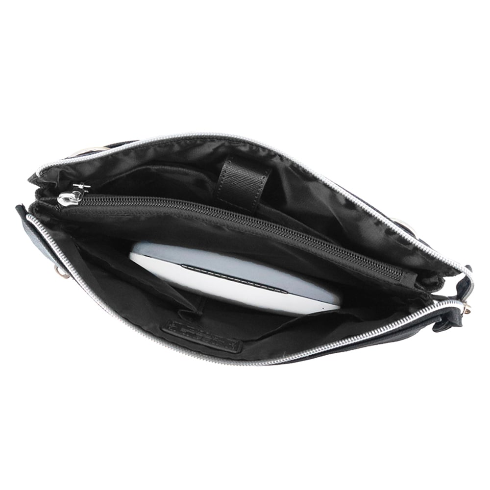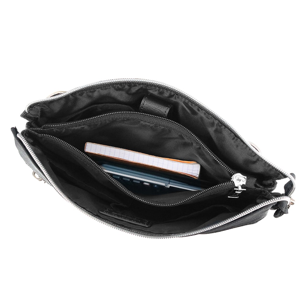 メインルームは仕切りやポケットで小物の整理がしやすい設計になっています。また、中央のファスナーポケットは紙幣や小銭をそのまま入れ、お財布代わりにすることもできます。