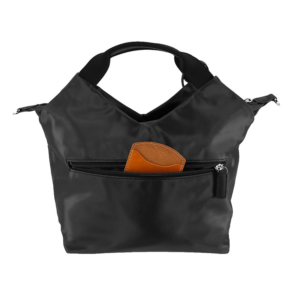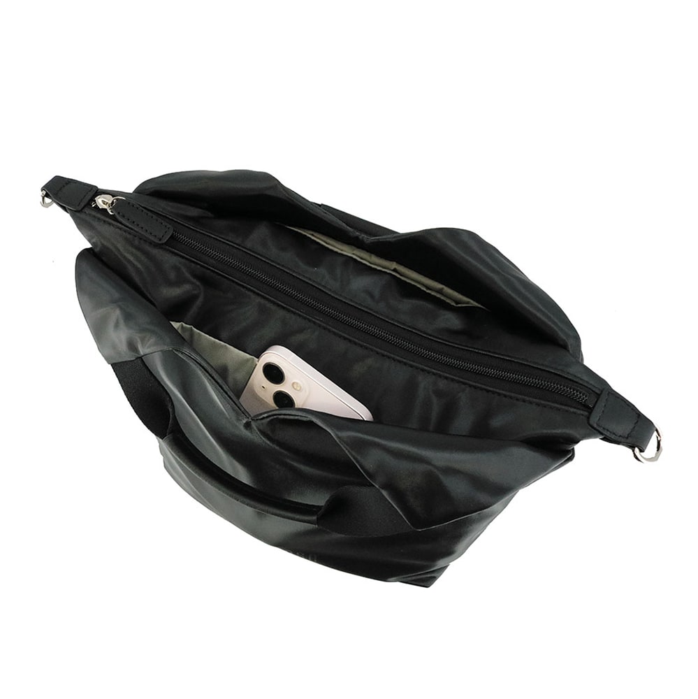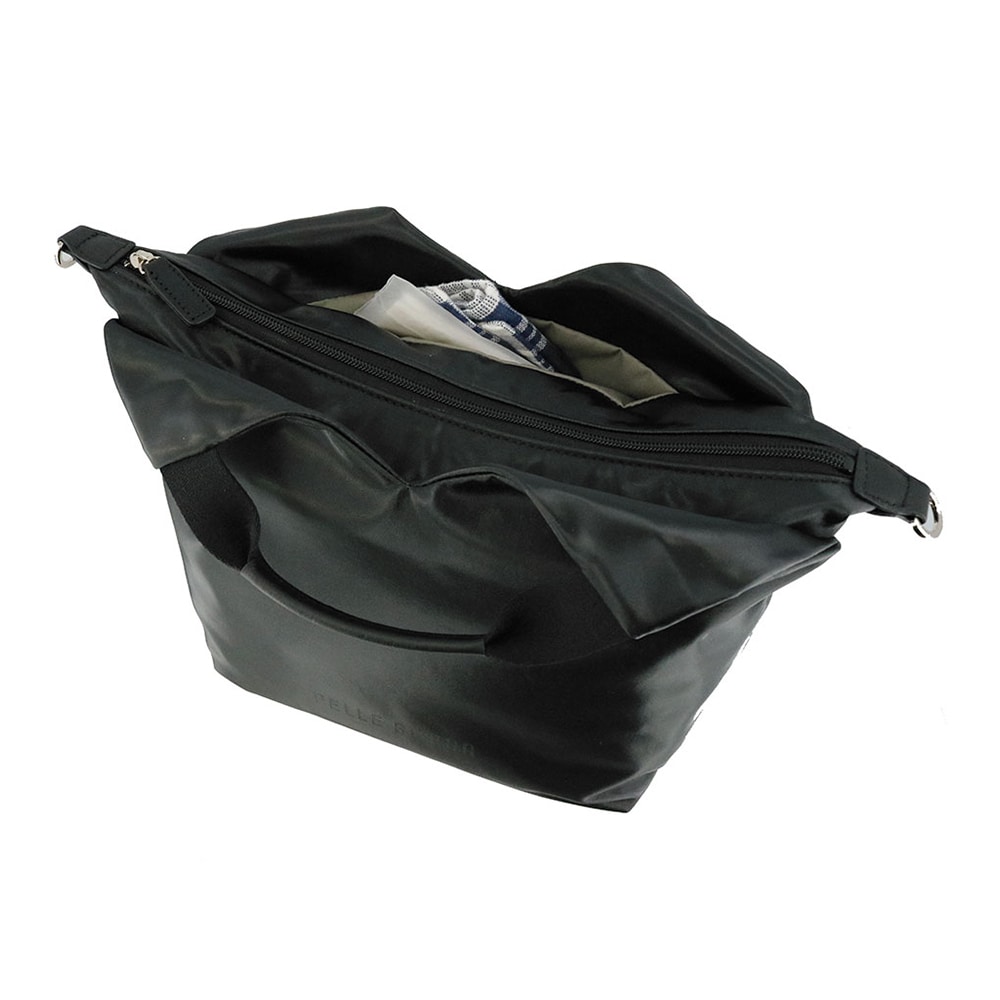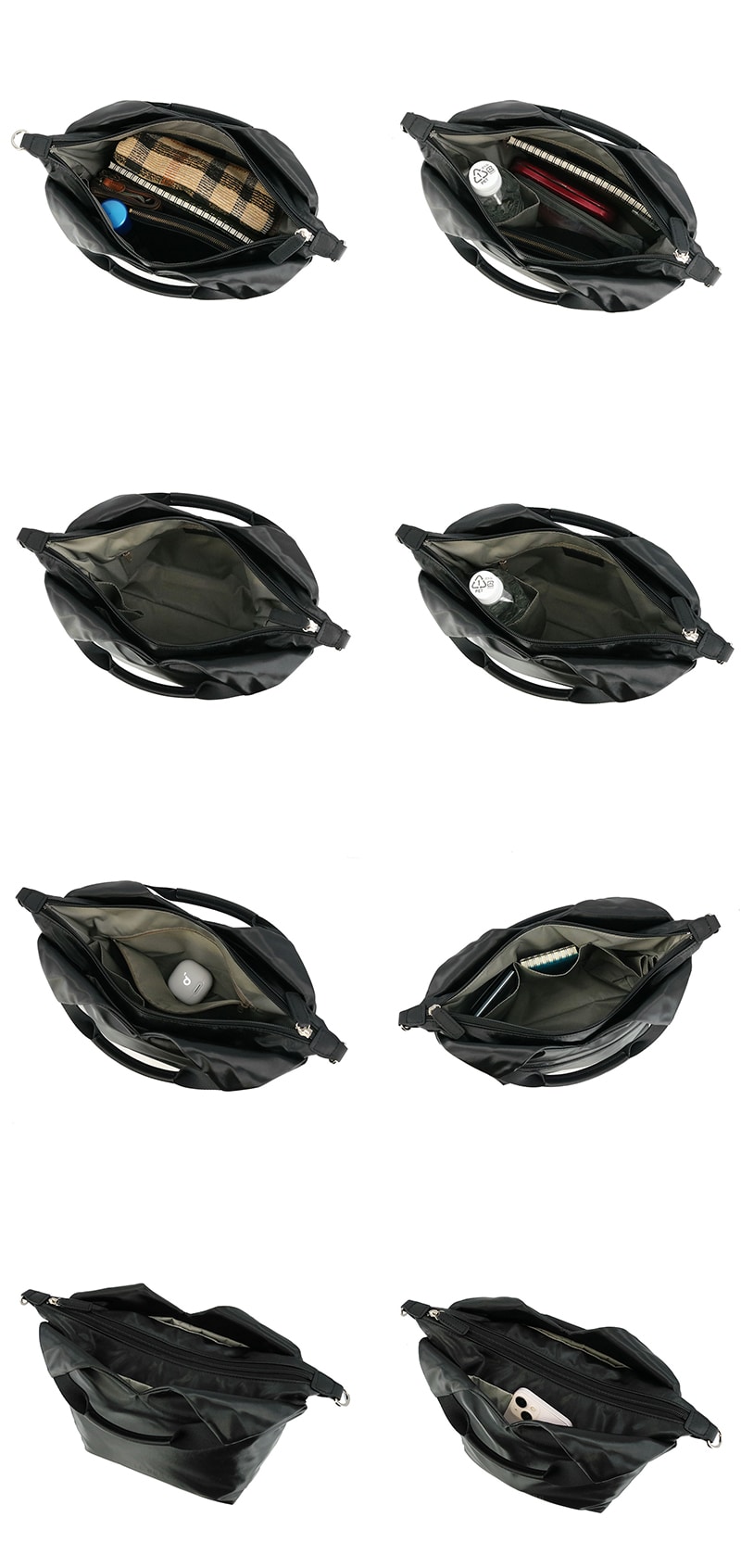 ボトルホルダーや抗菌防臭ポケットを備えた高スペックなハンドバッグ。