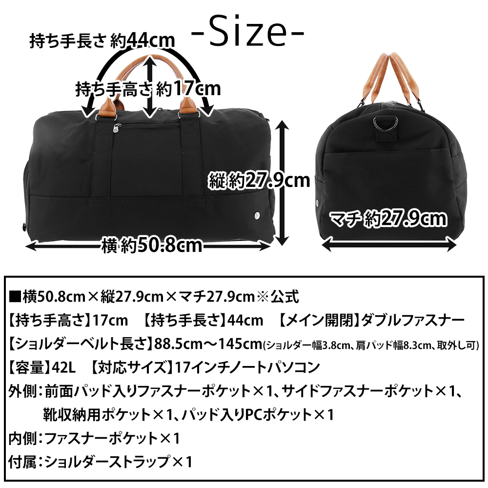 出張や旅行から、ジムやゴルフまで様々な用途で使えるボストンバッグ。