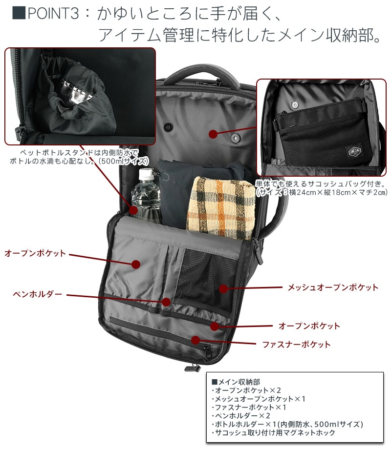 機能性はそのままにコンパクトに。最小限の荷物で身軽に移動したいビジネスシーンにも最適です。