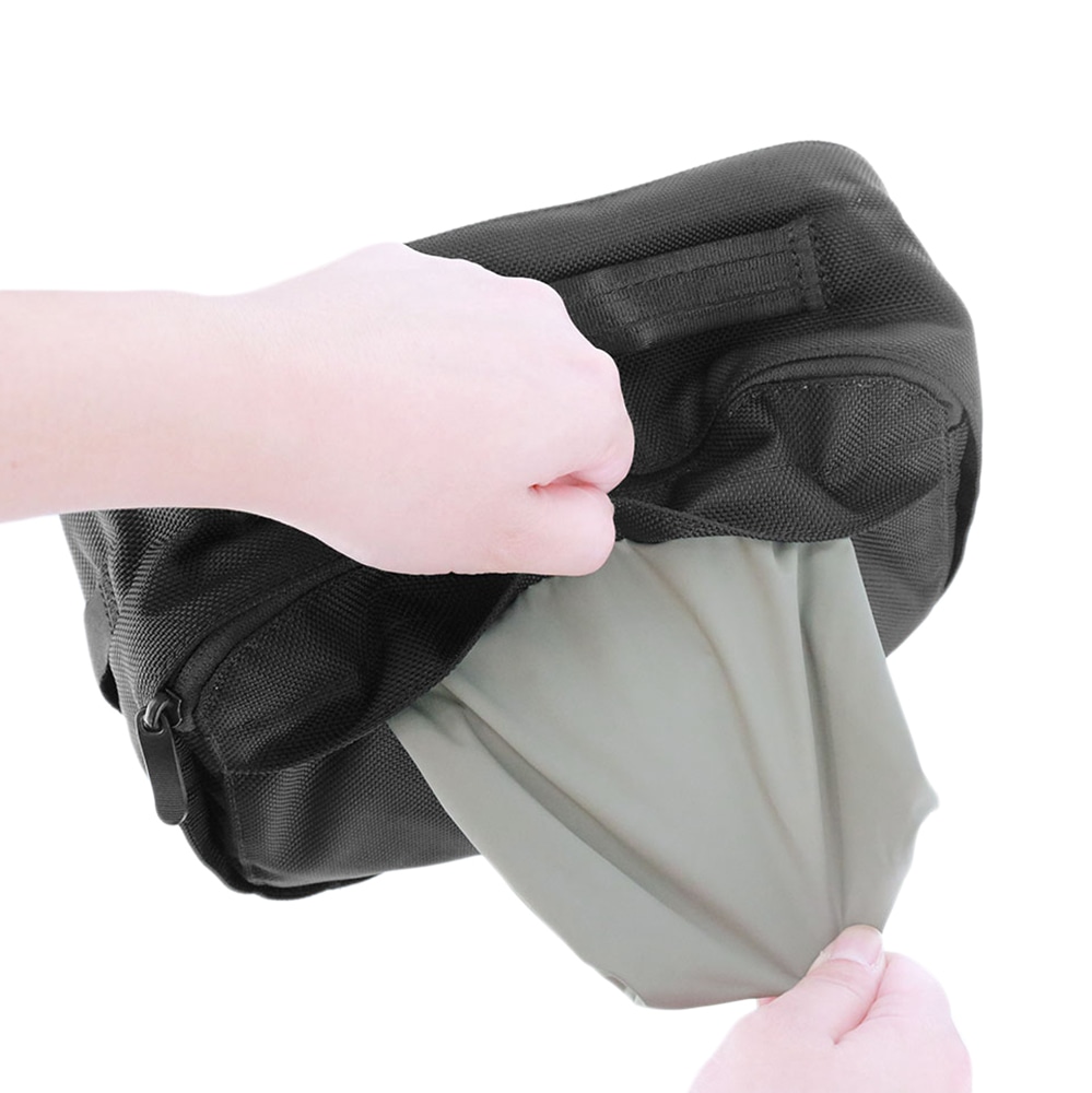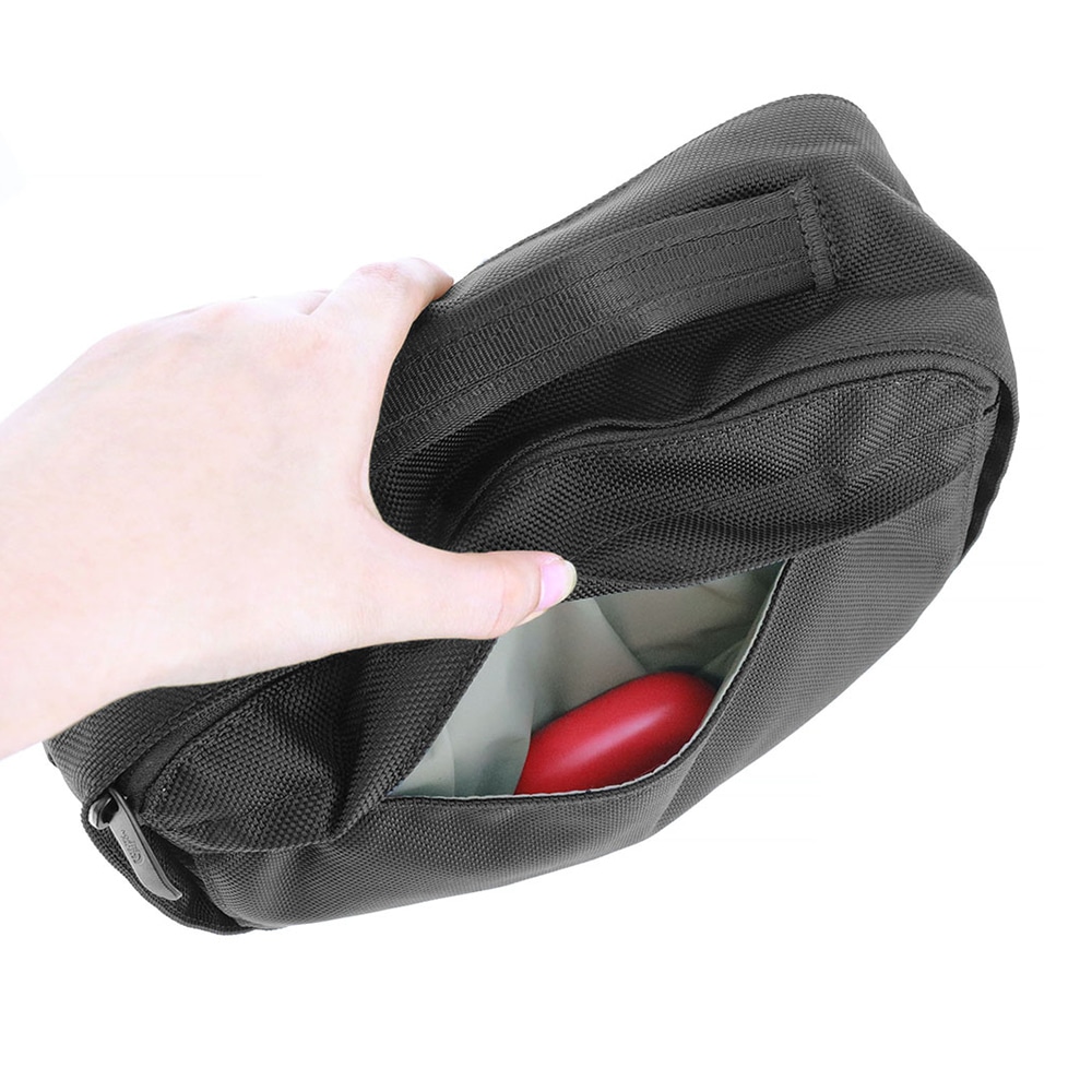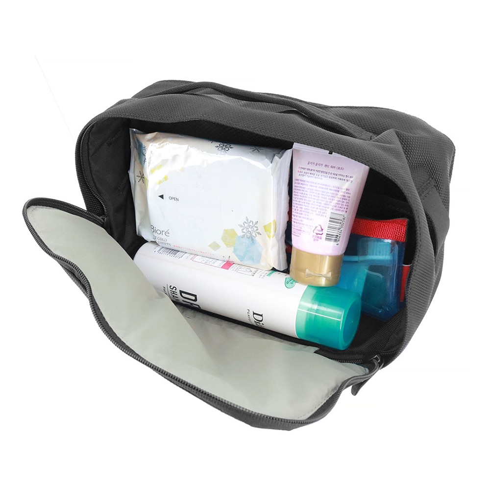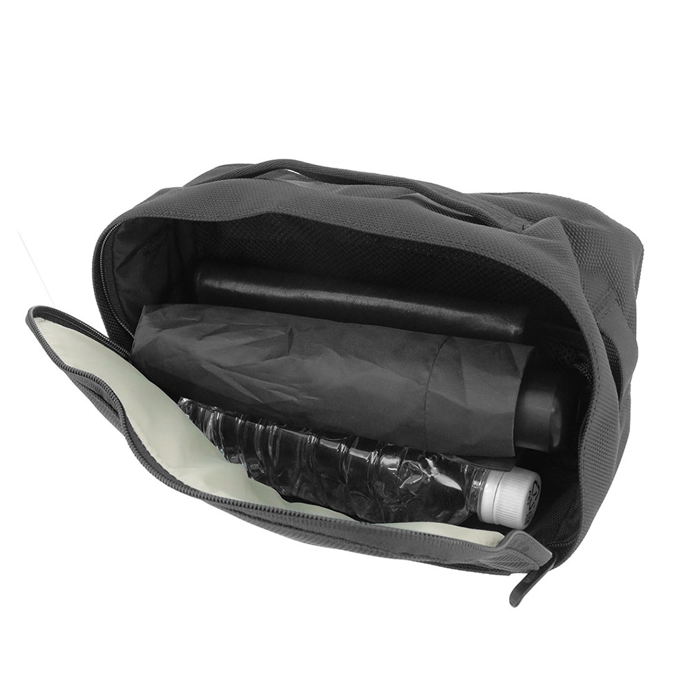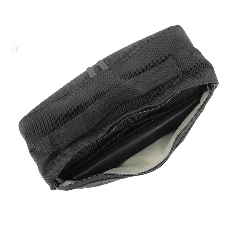 ショルダーベルトを外してパッキングポーチとしても使える2WAY仕様!前面側、背面側どちらからもアクセス出来る構造で、内部はメッシュポケットで仕切られています。(完全に仕切られているわけではありません)サッと持ち運びする際も便利な、ハンドルをバッグトップに設けています。