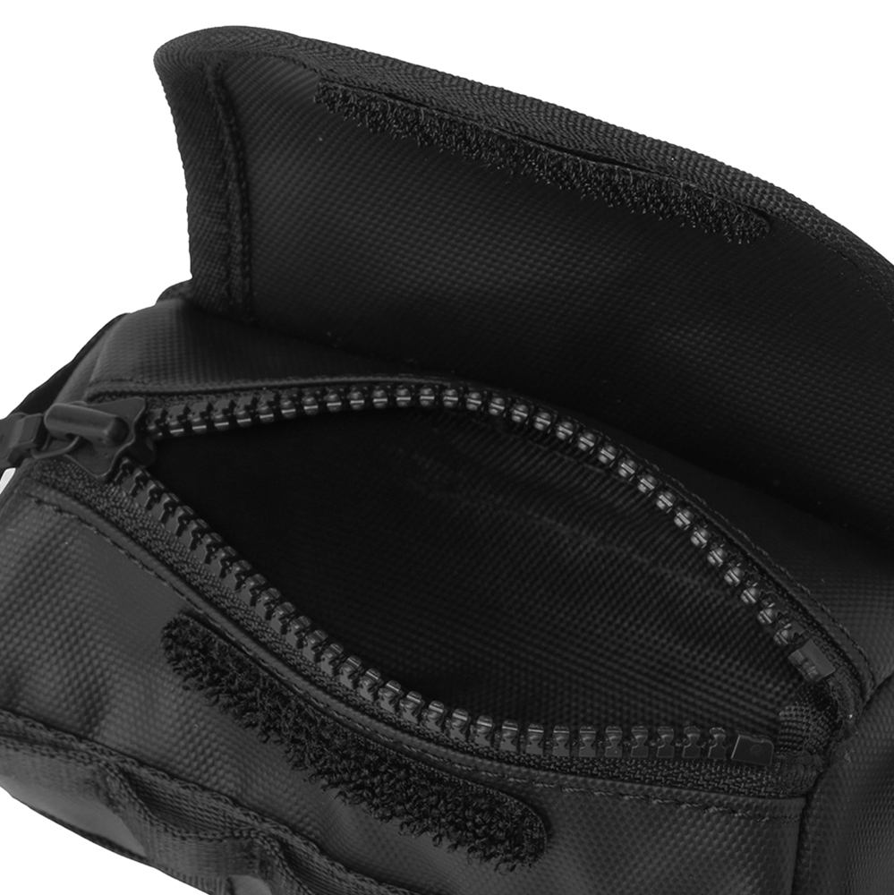 開閉はマジックテープとファスナーの二重構造で、中身をしっかりホールド。