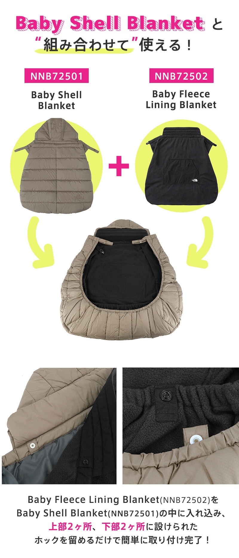 専用ドットボタンでBaby Shell Blanketと連結でき、保湿性を高めるレイヤリングが可能。