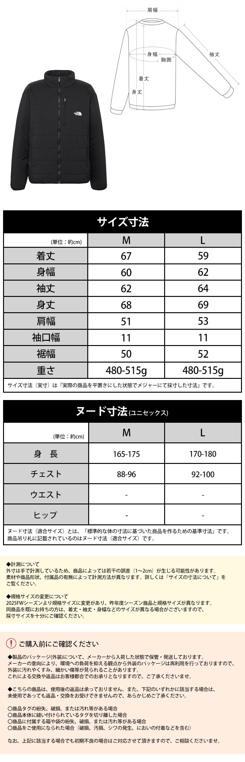 Mサイズ:身長165cm~175cm、胸囲88cm~96cm