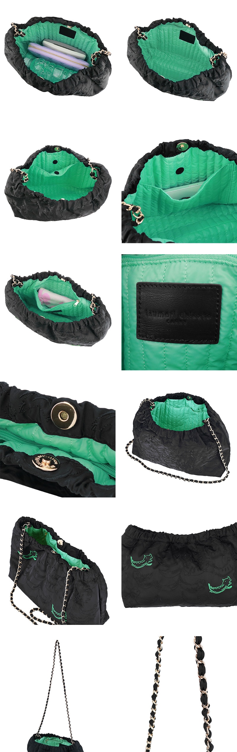 外ポケットを省いた事で、ボディ全体に施されたネコ刺繍を存分に楽しめるのもポイント◎