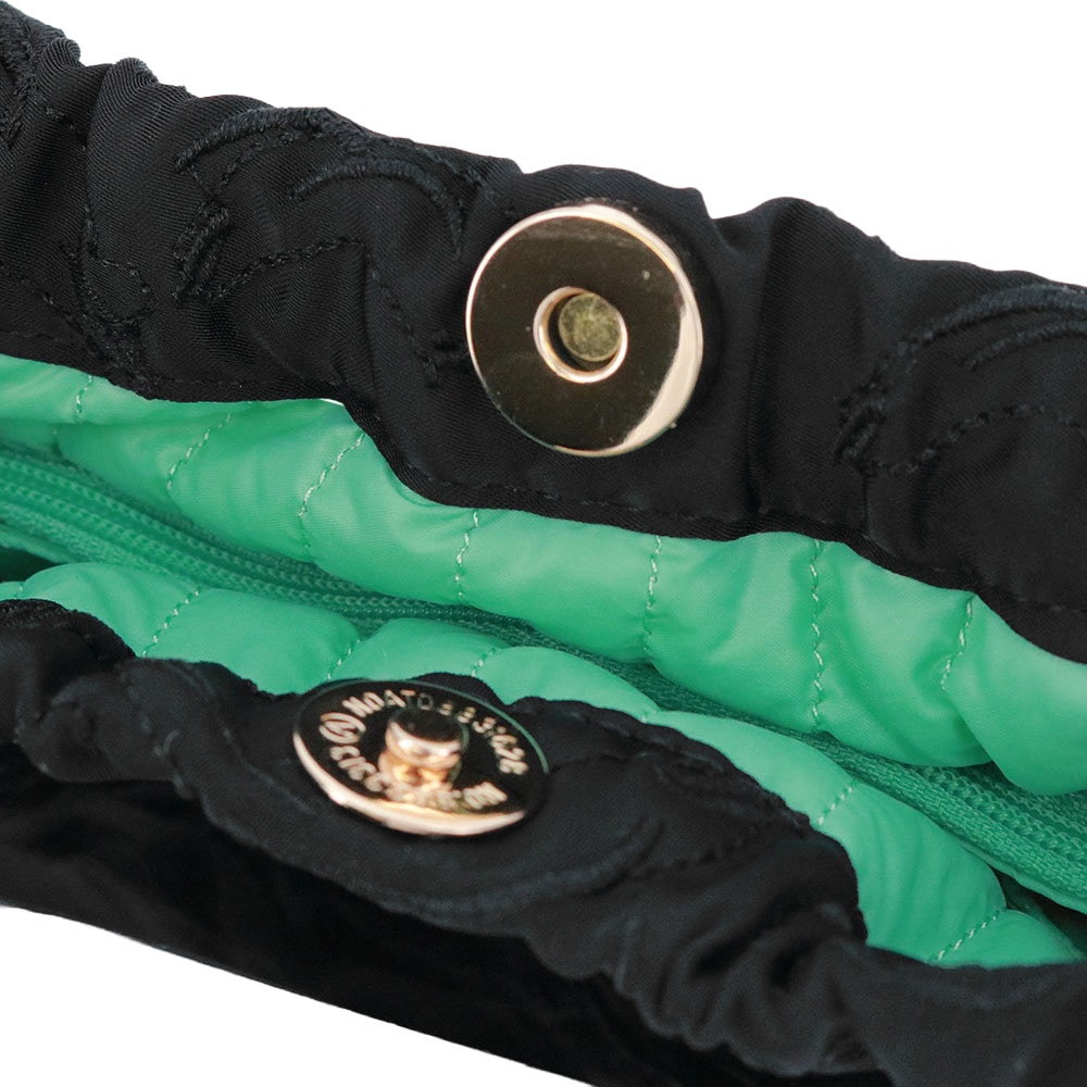 マグネットホック開閉で片手でも開け閉めしやすく、閉じたままでも左右からサッと中身を取り出せる日常使いに嬉しい設計。