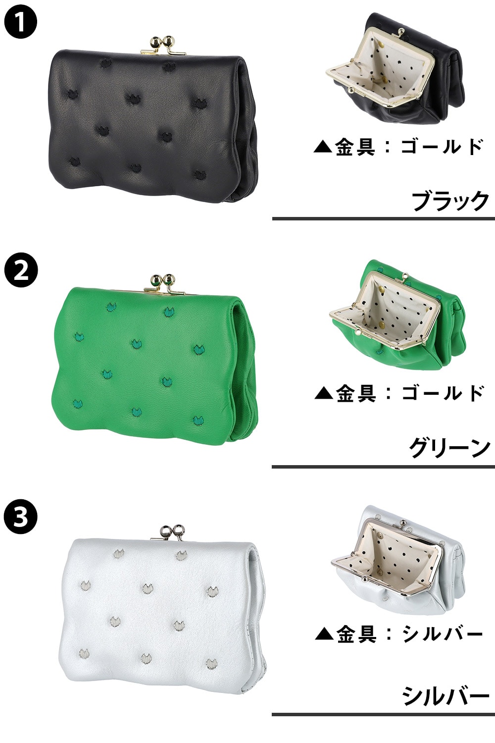 キーワード : 10代 20代 30代 入学 進学 卒業 入社 新卒 誕生日 記念日 就職祝い 仕事 買い物 ショッピング OL キレカジ カジュアル ガーリー エレガント ポップ ネコ 猫 刺繍 クラフト 折財布 がま口小銭入れ Wallet 銀 黒 緑 シープレザー 5枚以上 メイドインジャパン Made in Japan 日本製 プレゼント ギフト ラッピング ラッピング無料 贈り物 ご褒美 サプライズ 感謝 母 娘 姉妹 彼女 恋人 友達 大切 メンズ レディース 女性 通勤 通学 ビジネス 学生 ブランド ポイント消化 ニューバッグワカマツ ニューバックワカマツ