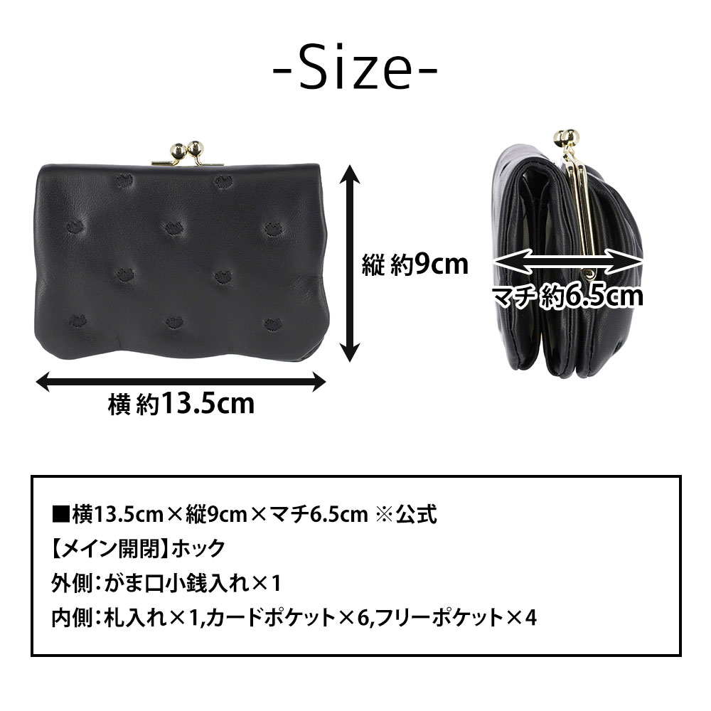 女性に人気のがま口小銭入れを採用しており、紙幣や硬貨、カード等一通りのものは入る実用性の高さもポイントです♪