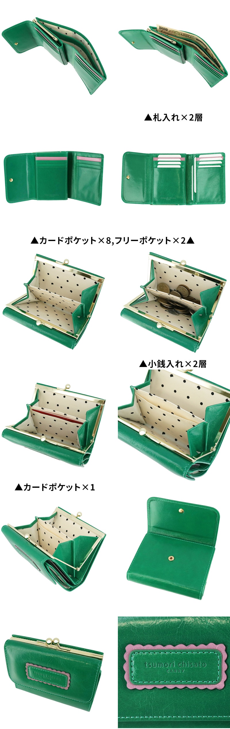 ツモリチサト 財布 二つ折り財布 がま口 折財布 小銭入れあり tsumori chisato シンプルバイカラー 57900 レディース 本革 小さめ 誕生日プレゼント ギフト ラッピング無料 【正規代理店】 1.グリーン -07