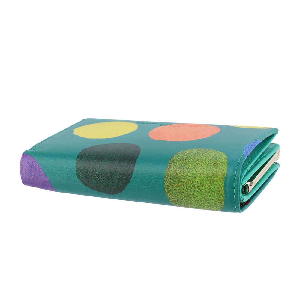 手描きの絵の具を弾ませたようなドット柄を本革に閉じ込めた、