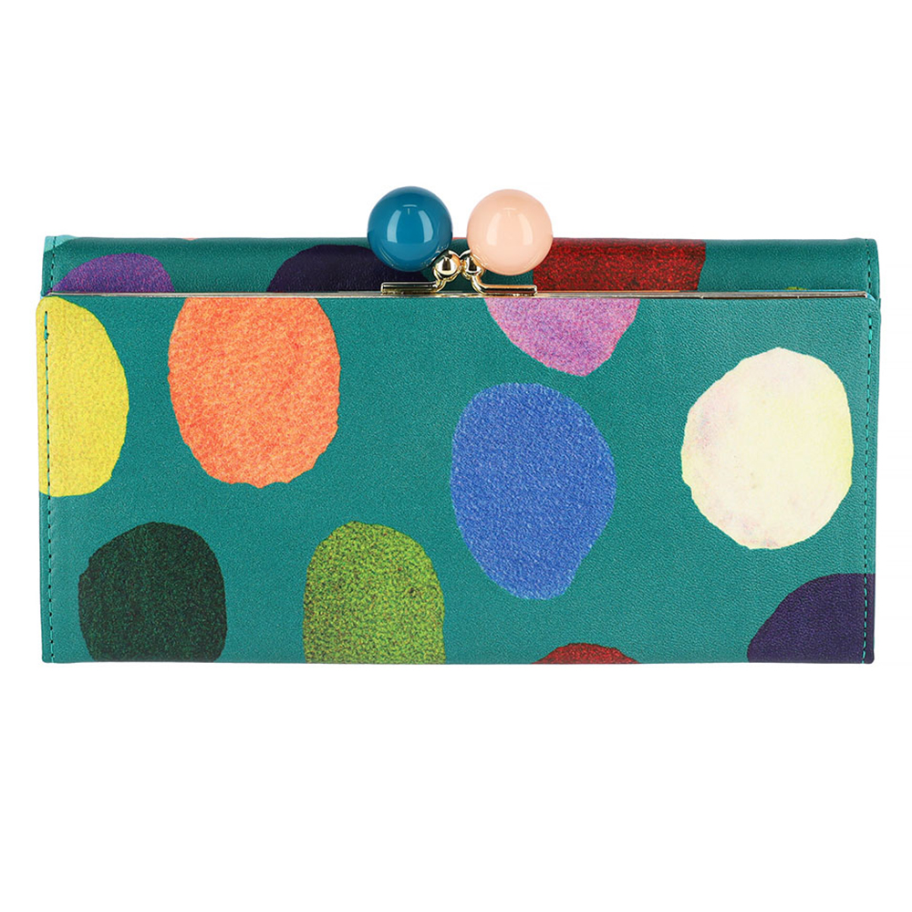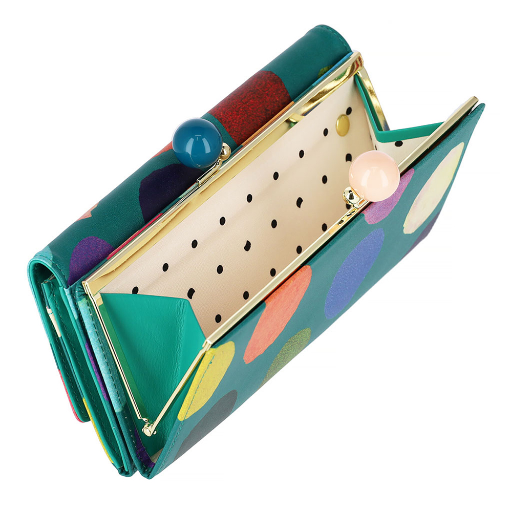 手描きの絵の具を弾ませたようなドット柄を本革に閉じ込めた、