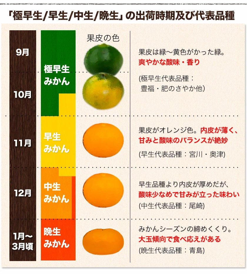 大中小それぞれ味が微妙に違っていて、全体的にあっさりした味に感じました。薄皮は特別薄くもなく普通、白いフワフワした部分も結構あるみかんでした。