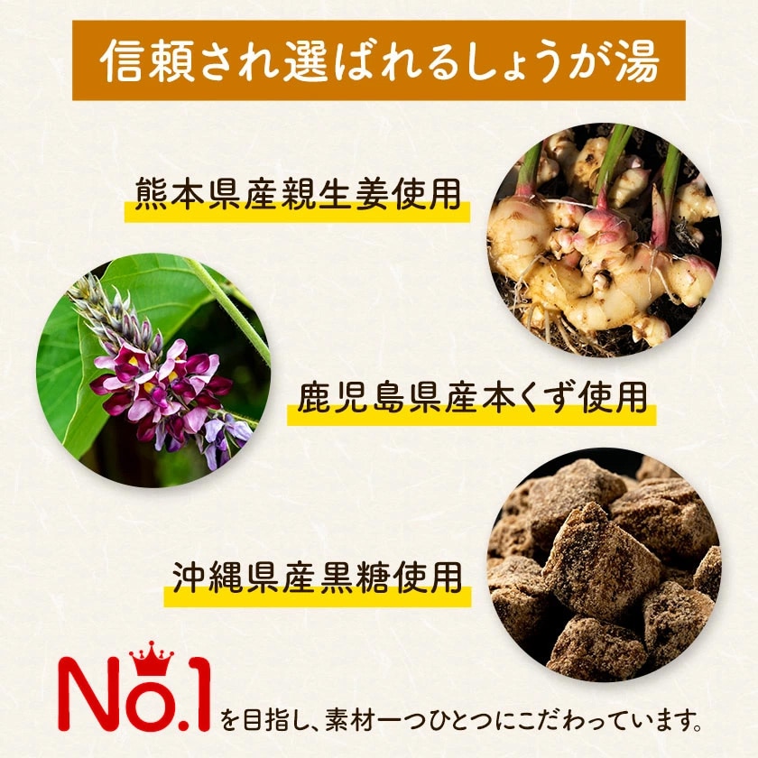 ■原材料名 砂糖(国内製造)、片栗粉[馬鈴薯澱粉(遺伝子組換えでない)]、生姜、本葛、黒糖、カリン/チャ抽出物