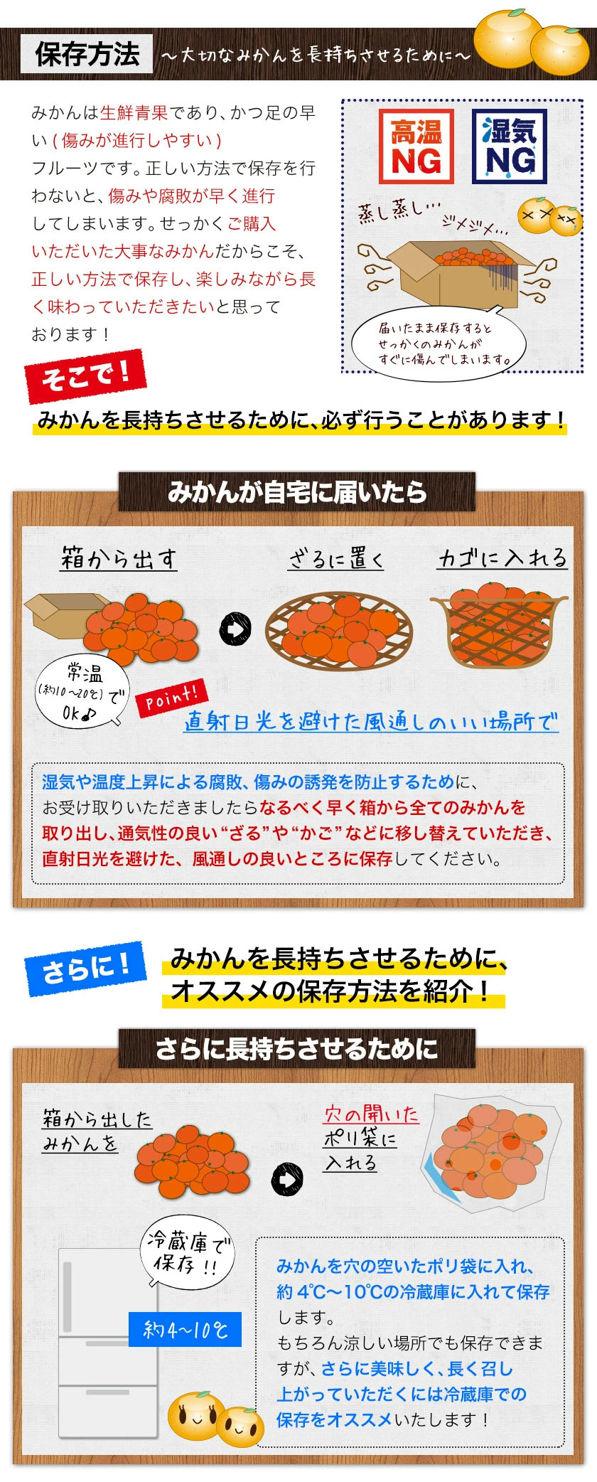 ■保存方法 直射日光の当たらない、風通し良く涼しい冷暗所で保存してください。冷暗所や冷蔵庫などで保管もオススメです。 冷蔵庫の野菜室で保存する場合は、ポリ袋などに入れて乾燥を防いでください。 召し上がる順番は、できるだけ箱の底にあった商品からがオススメです。生ものですので、傷みが発生した場合は周りに移る前に、すぐに取り除いていただきますようお願いいたします。
