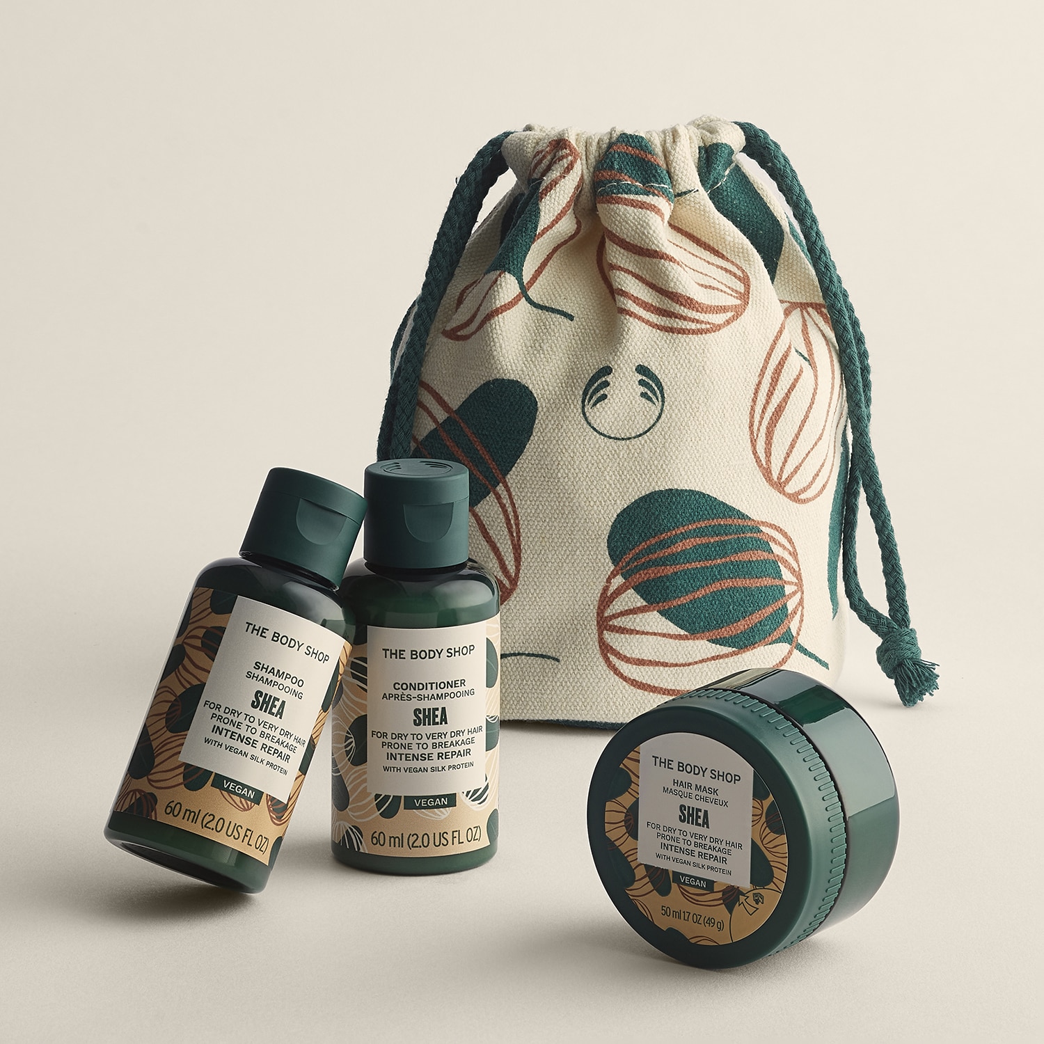 人気のシアシリーズのシャンプー、コンディショナー、ヘアマスクがお試しいただけるトライアルセット。