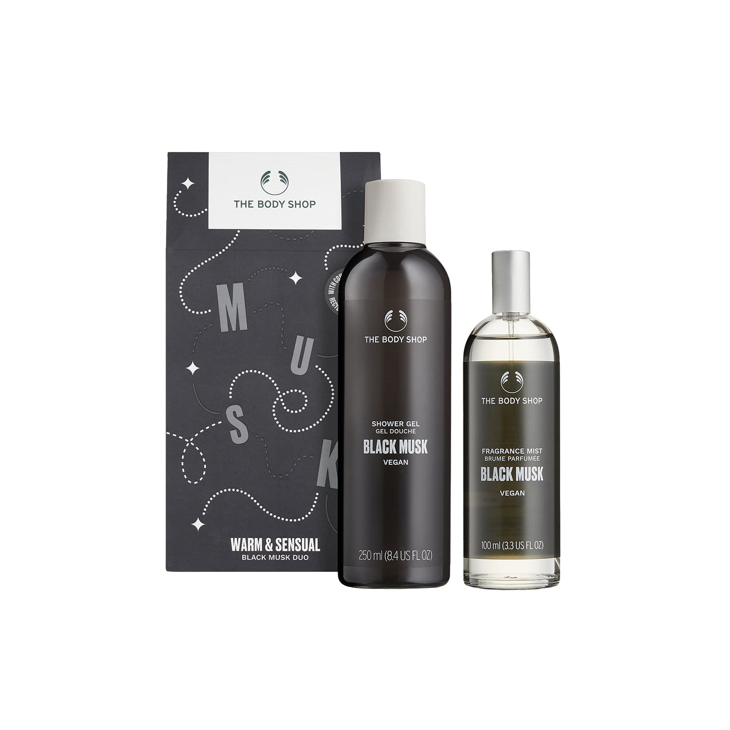 ボディシャンプーで、やわらかな肌に仕上げ、フレグランスミストは深いムスクの温かみのある香りがまとう人の魅力を強め、自信を宿します。