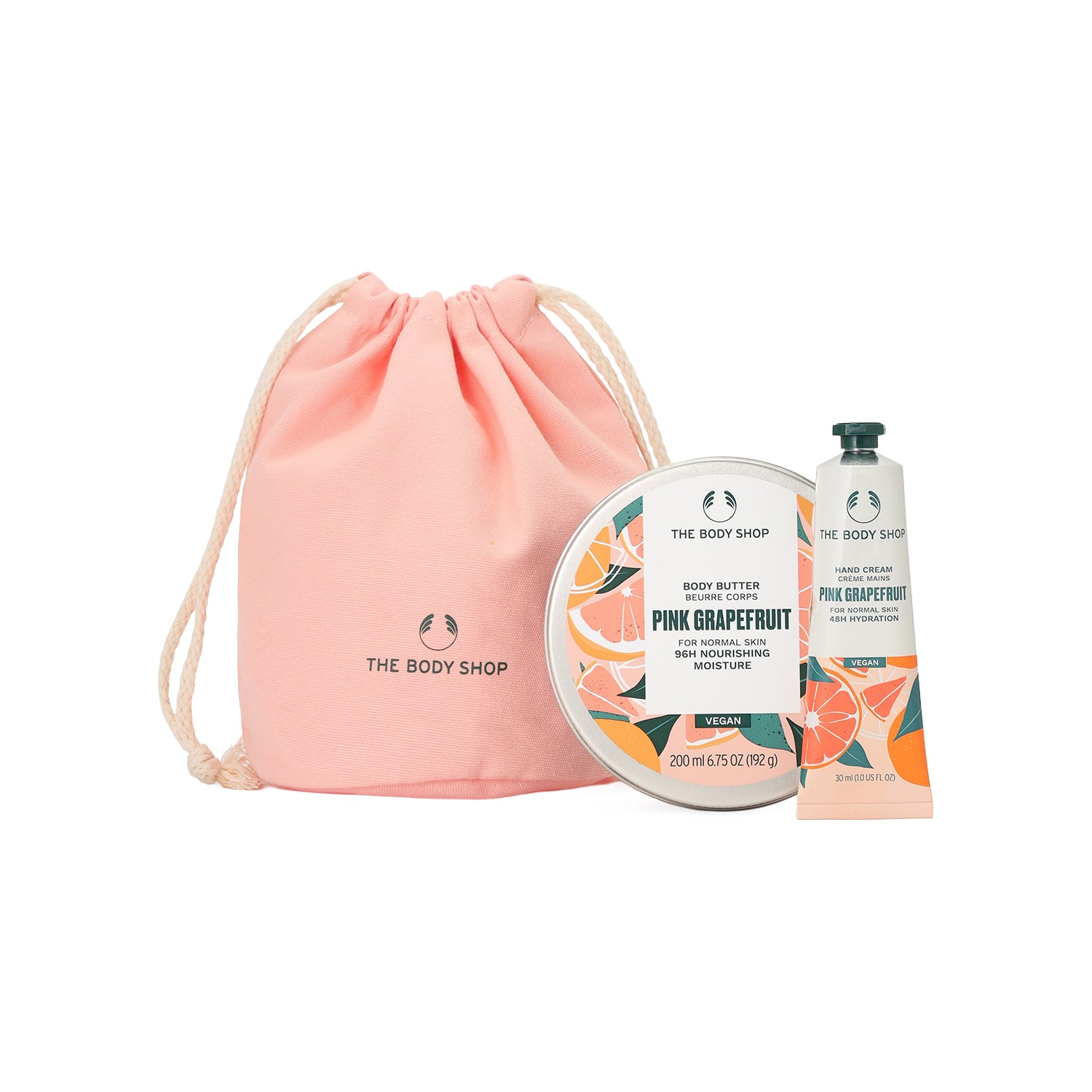 フレッシュでジューシィなピンクグレープフルーツの香りで、すっきりとポジティブな気分に包まれながらボディケアをお楽しみいただける、巾着付きの限定ギフトです。