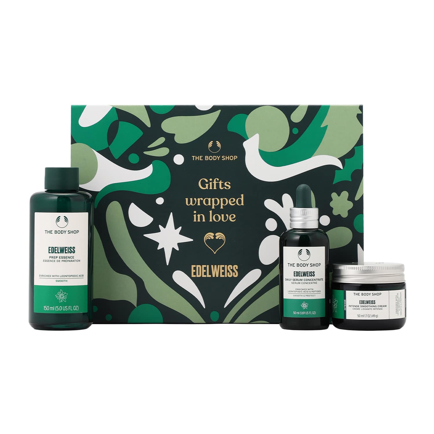 過酷な環境下でもしなやかに生き抜く、生命力の強い「エーデルワイス」シリーズの化粧水と美容液、保湿クリームがセットになった数量限定ギフトです。