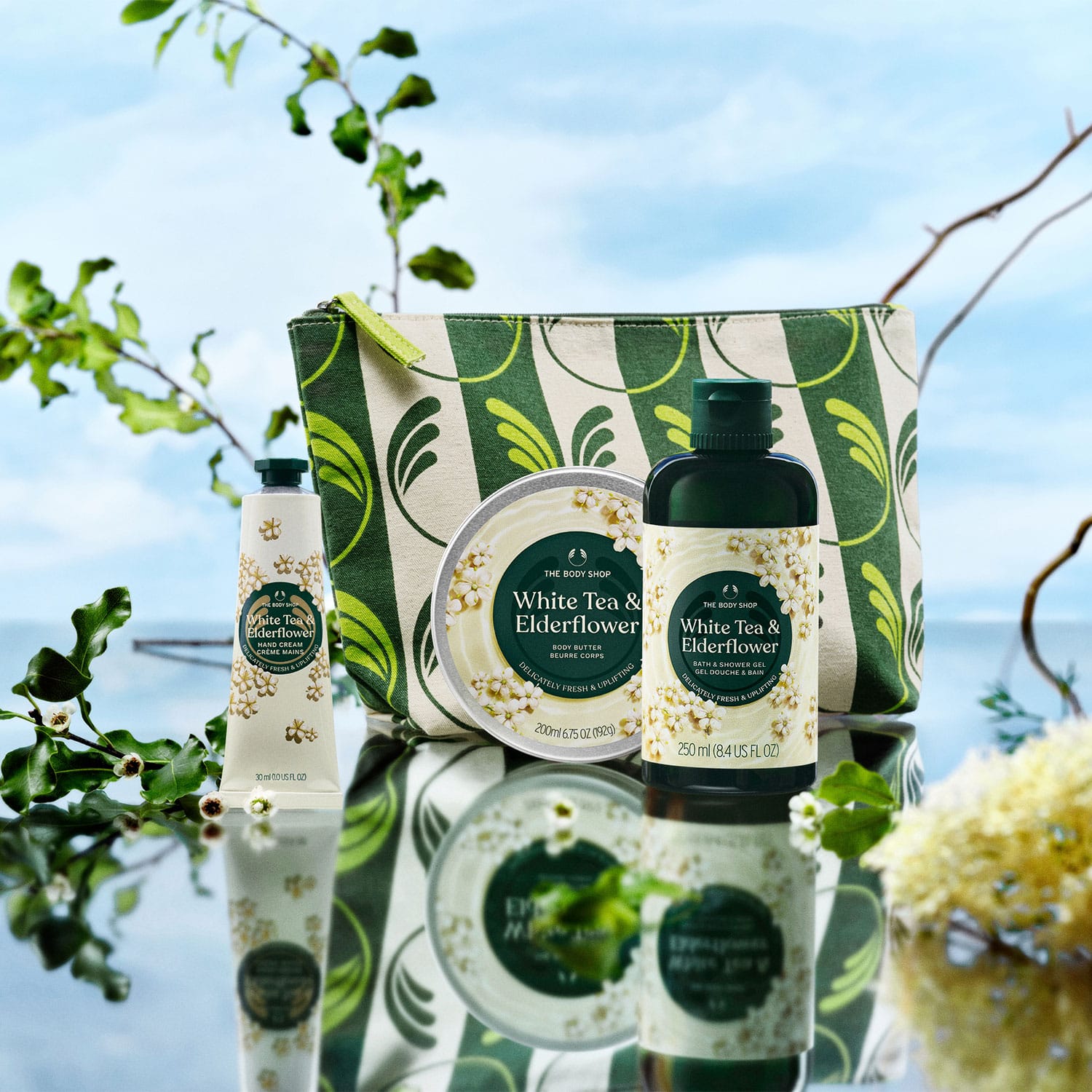 ホワイトティーとエルダーフラワーの優美なブレンドが広がる、フレッシュフローラルの香りのボディケアギフト