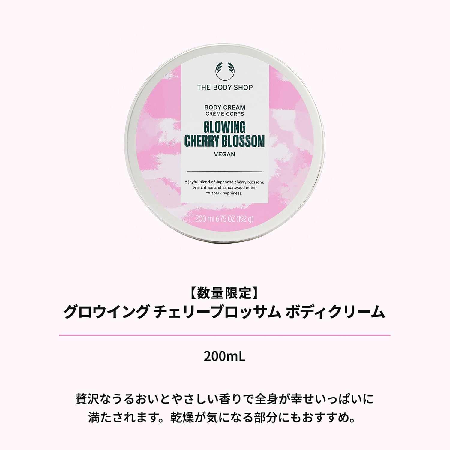幸せを呼び覚まし、歓びをあふれさせるような桜、キンモクセイ、サンダルウッドをブレンドした香りのヴィーガン認証*1ボディクリームが、数量限定で今年も登場。