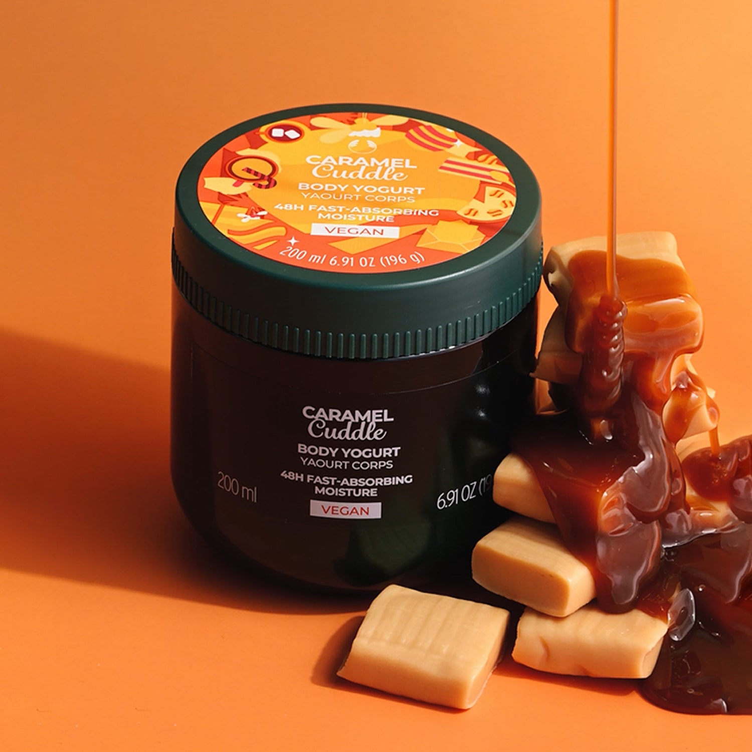 心地良いゴールドのしずく:ドルチェ・デ・レチェの濃厚な甘み、ソルトブロッサム、クリーミーなバニラの香りが肌になじみ、甘く柔らかく、シルクのような滑らかな潤いで包み込みます。