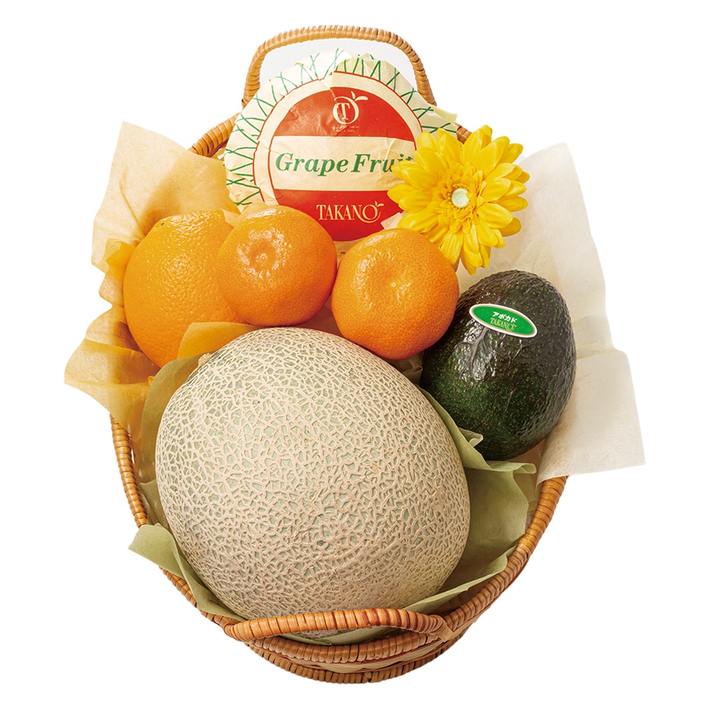 | 内容量 | 温室栽培みかん(愛知県、佐賀県、大分県または愛媛県産)×2、メロン(千葉県、茨城県、熊本県または山形県産)、グレープフルーツ(アメリカ、南アフリカまたはトルコ産)、オレンジ(アメリカ、オーストラリア、南アフリカまたはエジプト産)、アボカド(メキシコまたはペルー産)、ガーベラオーナメント×各1 |