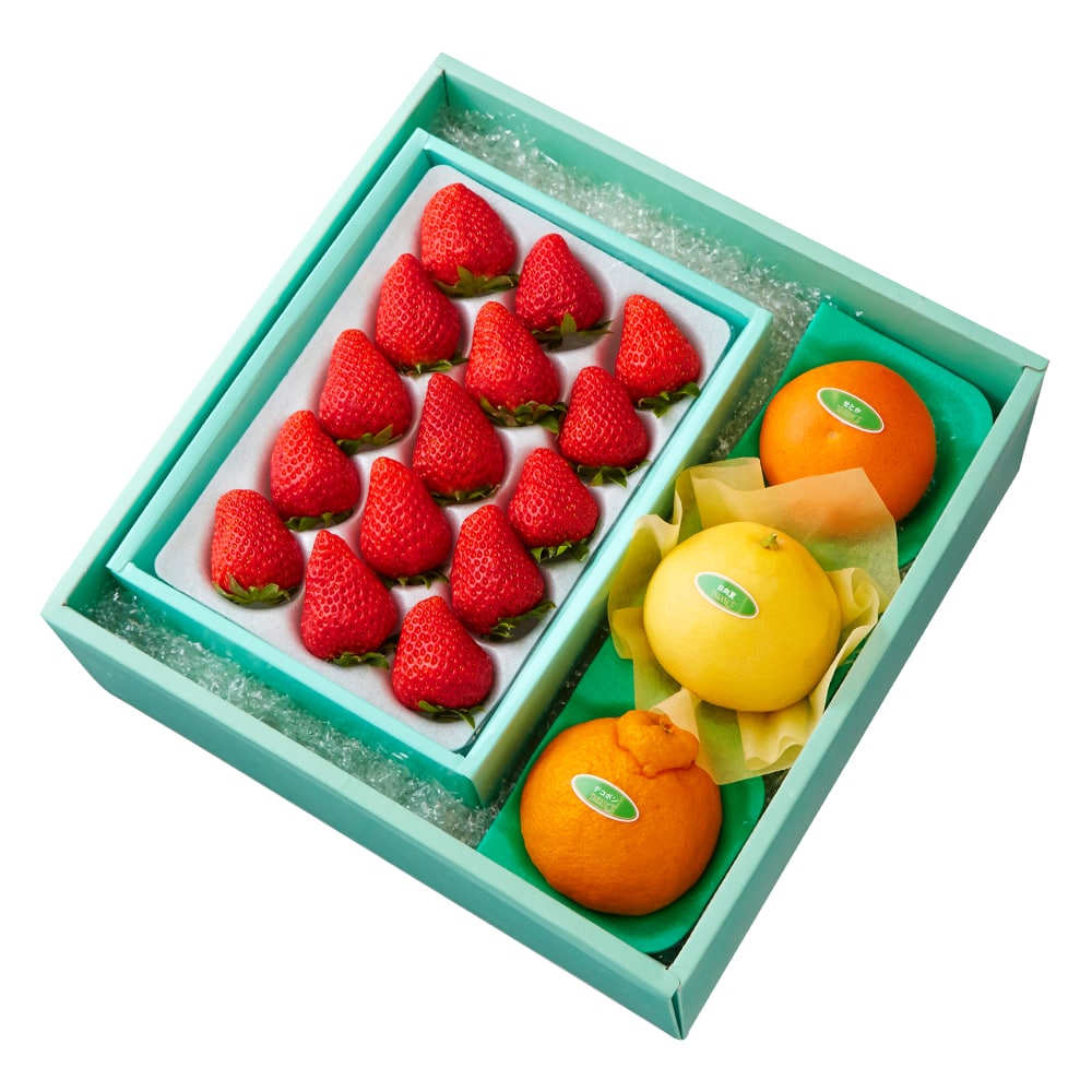 | 内容量 | 苺15粒(静岡県、佐賀県、栃木県、熊本県、千葉県、長崎県、福岡県、茨城県、徳島県または香川県産)、デコポン(佐賀県、熊本県または鹿児島県産)、せとか(佐賀県、愛媛県または愛知県産)、日向夏(宮崎県産)×各1 |