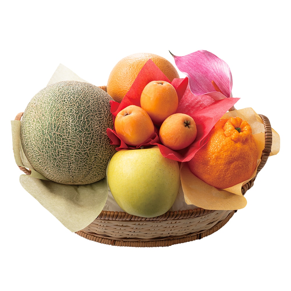 | 内容量 | メロン(熊本県、茨城県または千葉県産)、デコポン?(熊本県または佐賀県産)、河内晩柑(愛媛県または熊本県産)、シナノゴールド(青森県産)×各1、枇杷(長崎県または千葉県産)×3、カラーオーナメント×1 |