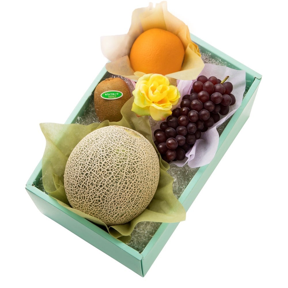 | 内容量 | メロン(千葉県、茨城県または山形県産)、キングデラ(山梨県産)、オレンジ(アメリカ、オーストラリア、南アフリカまたはトルコ産)、キウイフルーツ(ニュージーランド産)×各1、バラ(造花)×1 |
